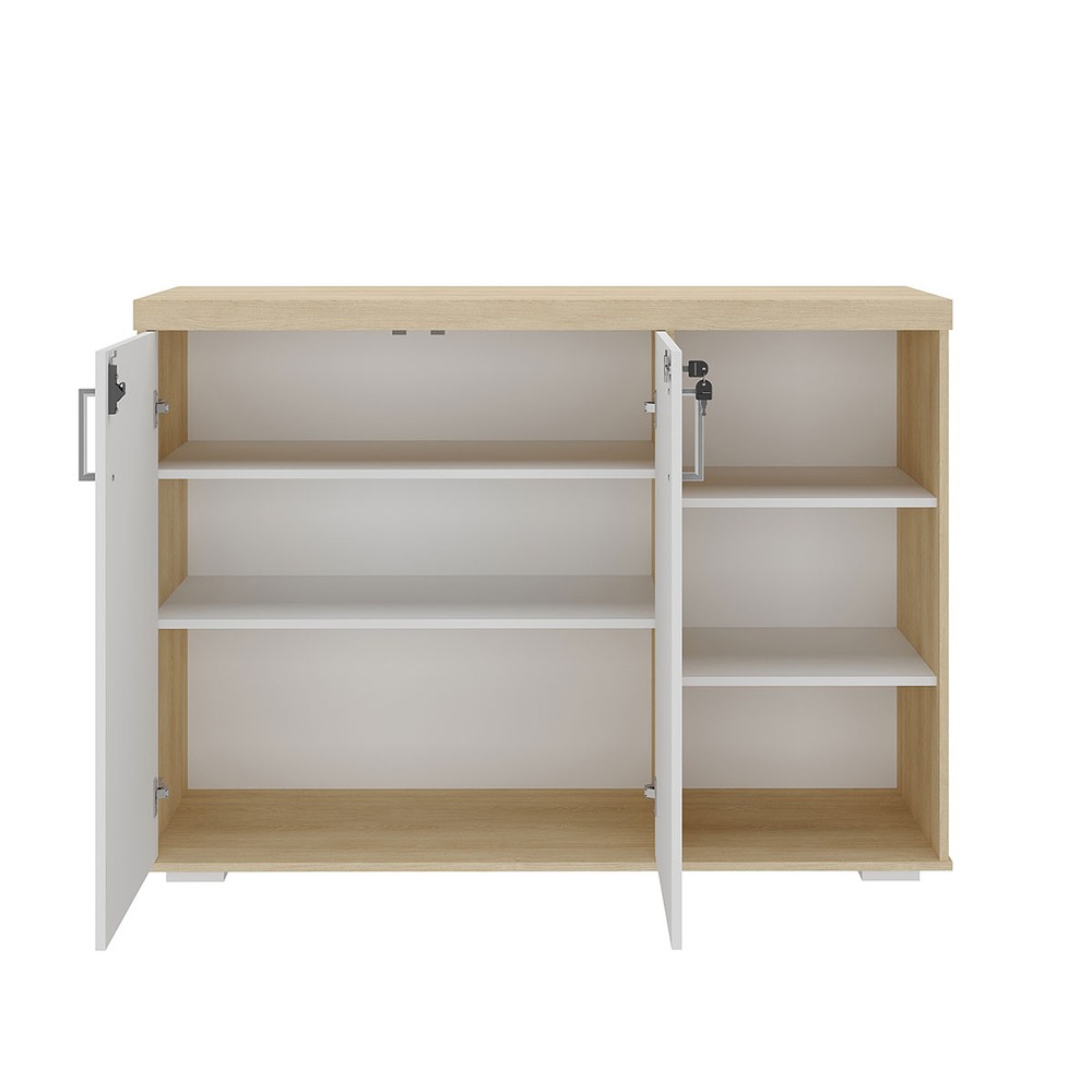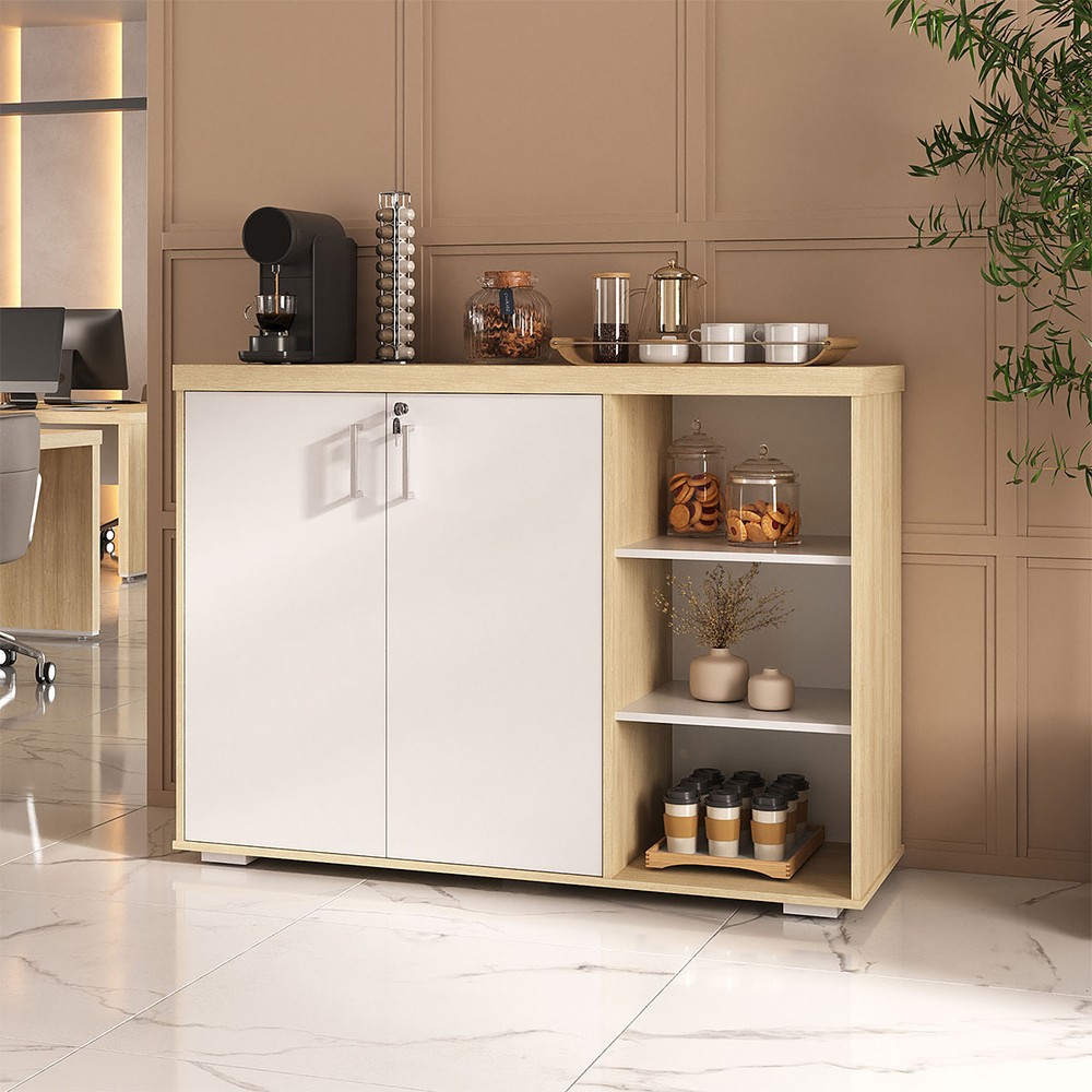 Armário para Escritório Tamburato 2 Portas 4 Prateleiras Carvalho/Branco - Artany Móveis