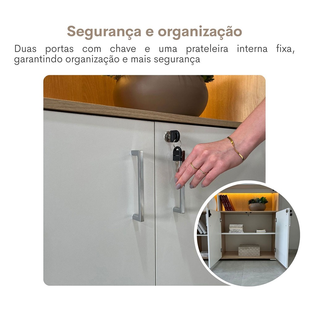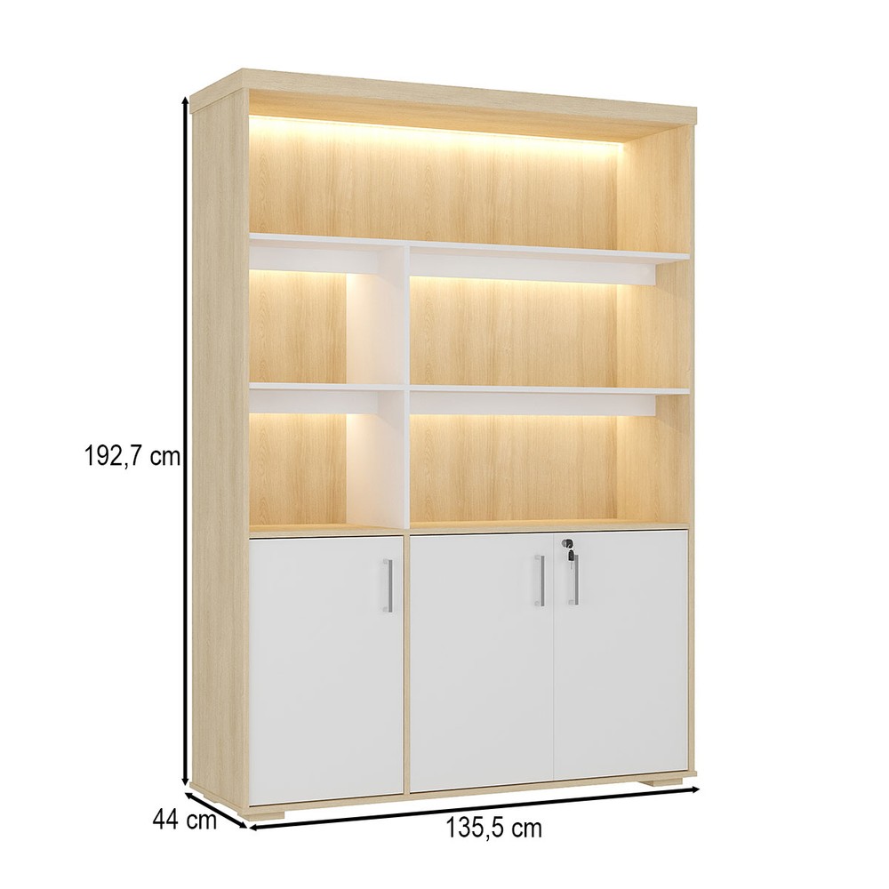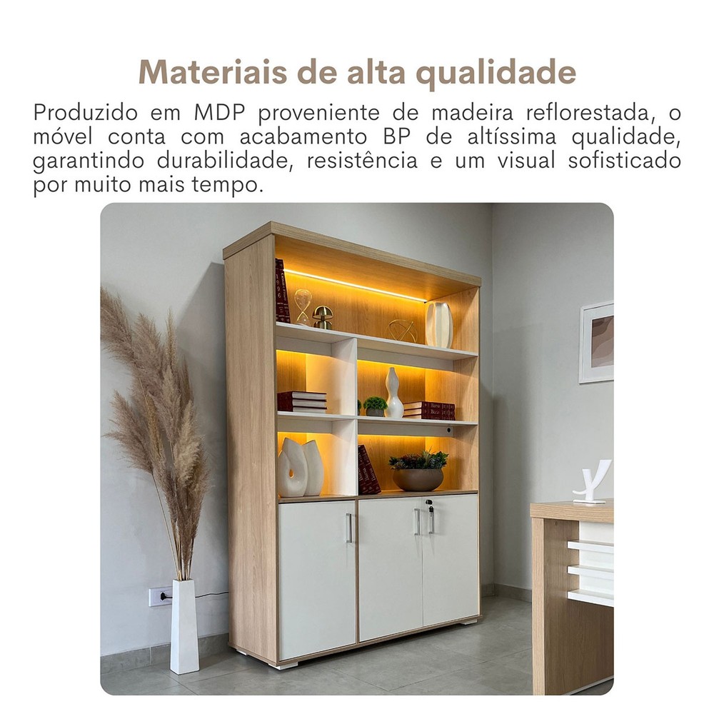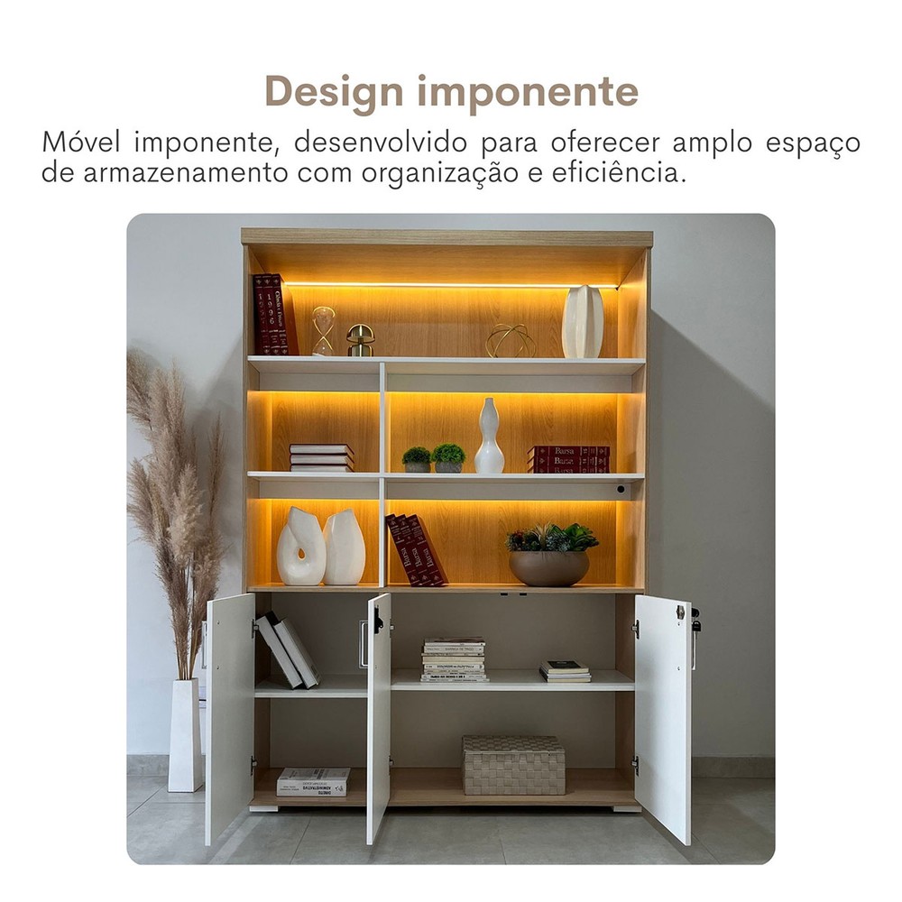 O(a) Armário para Escritório Tamburato com Led Carvalho/Branco - Artany Movéis é produzido em MDF na escala de brilho Semi-Fosco, e possui um grau de dificuldade de montagem: Médio.