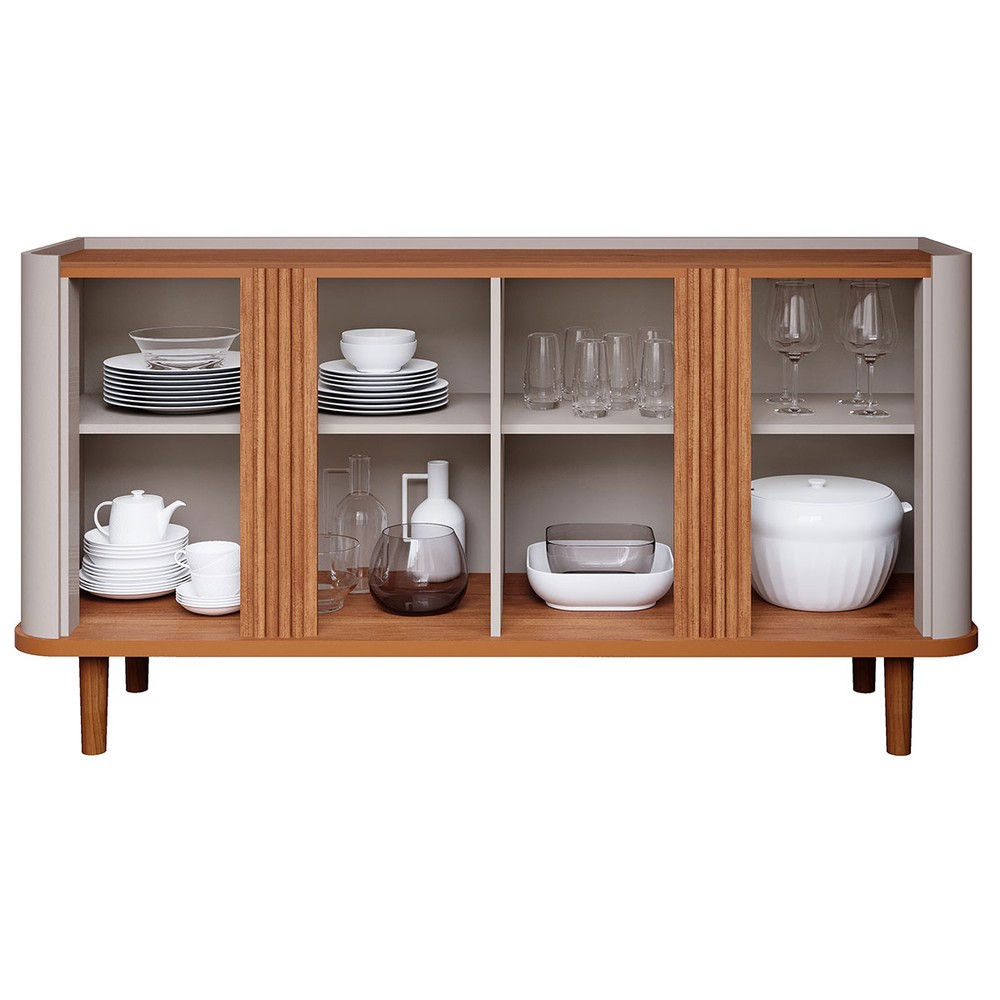 O(a) Balcão Buffet Eva 4 Portas 2 Prateleiras Off White/Cinamomo - Cimol é produzido em MDF na escala de brilho Semi-Brilho, e possui um grau de dificuldade de montagem: Médio.