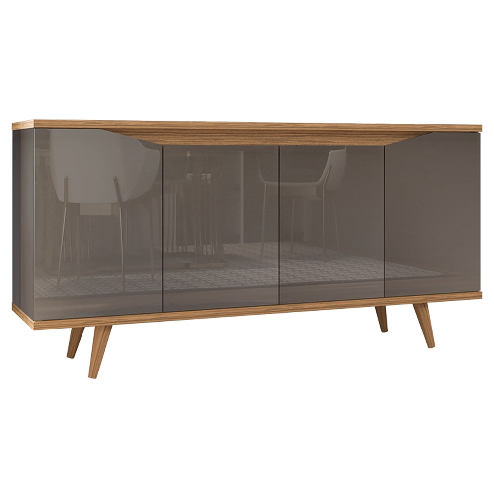 Balcão Buffet Gracyella 4 Portas Cinza Perola/Noce -  Pnr Móveis