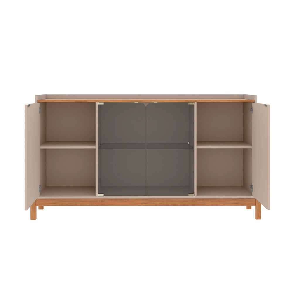 O(a) Balcão Buffet Jim 4 Portas 3 Prateleiras com Vidro Off White/Cedro - Pnr Móveis é produzido em MDF e MDP na escala de brilho Semi-Brilho, e possui um grau de dificuldade de montagem: Médio.