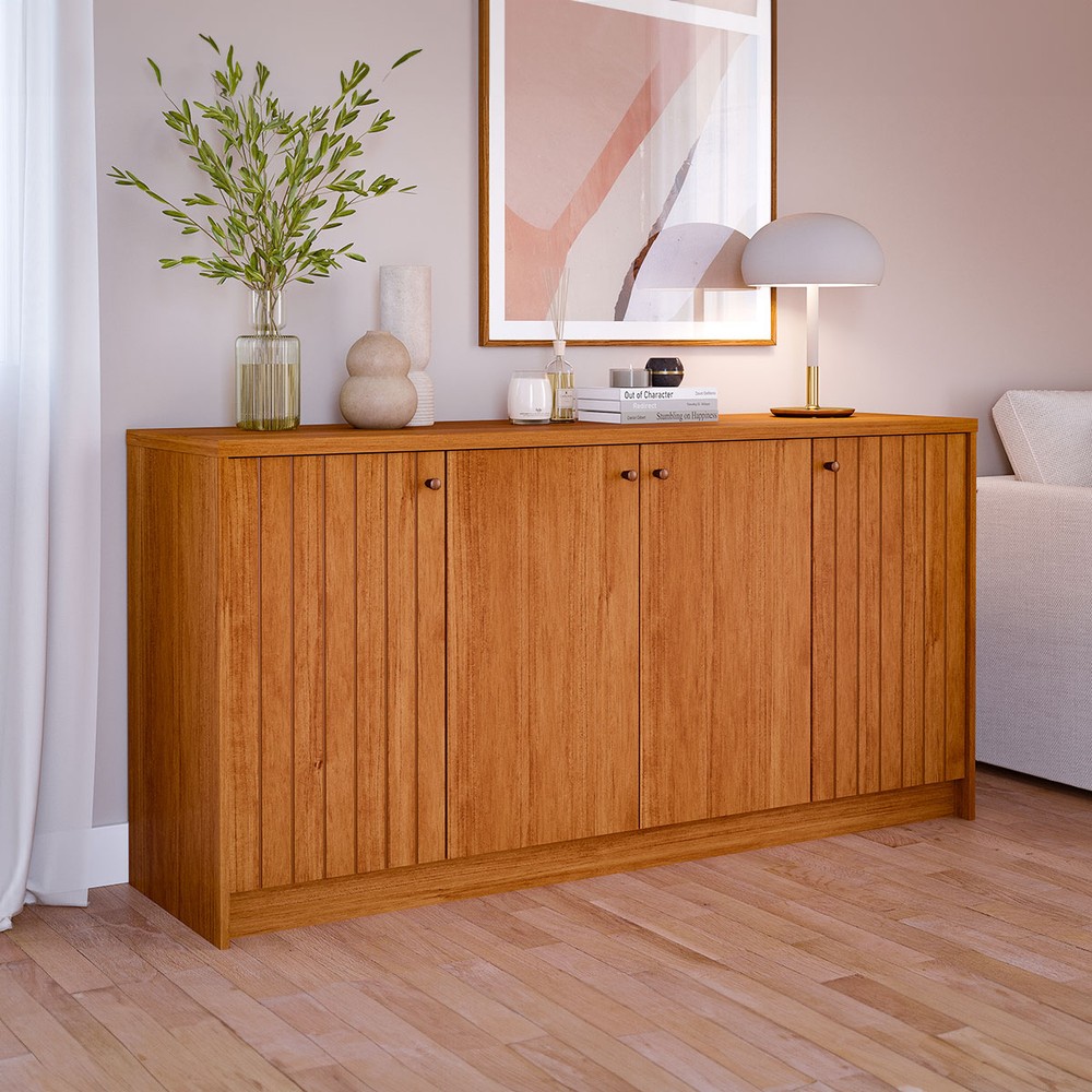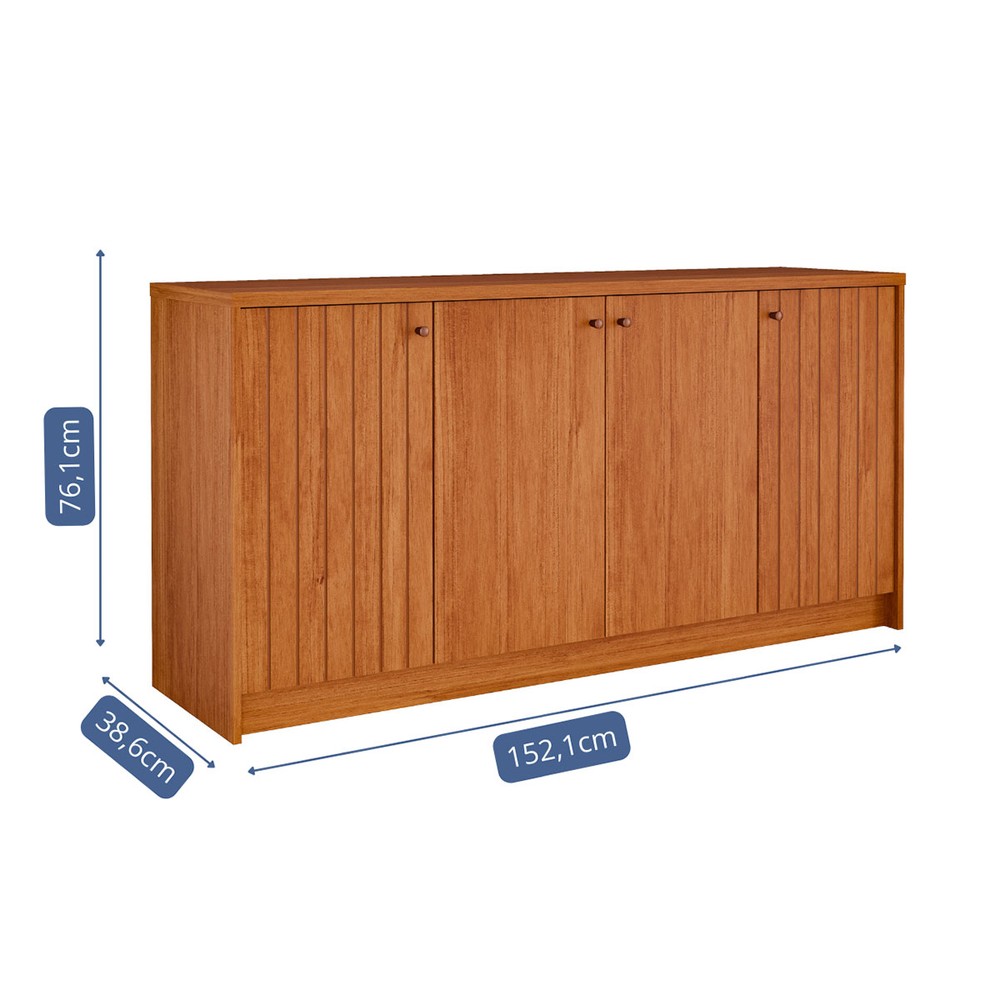 O(a) Balcão Buffet Lia 4 Portas 3 Prateleiras Cinamomo - Cimol é produzido em MDF na escala de brilho Semi-Brilho, e possui um grau de dificuldade de montagem: Médio.