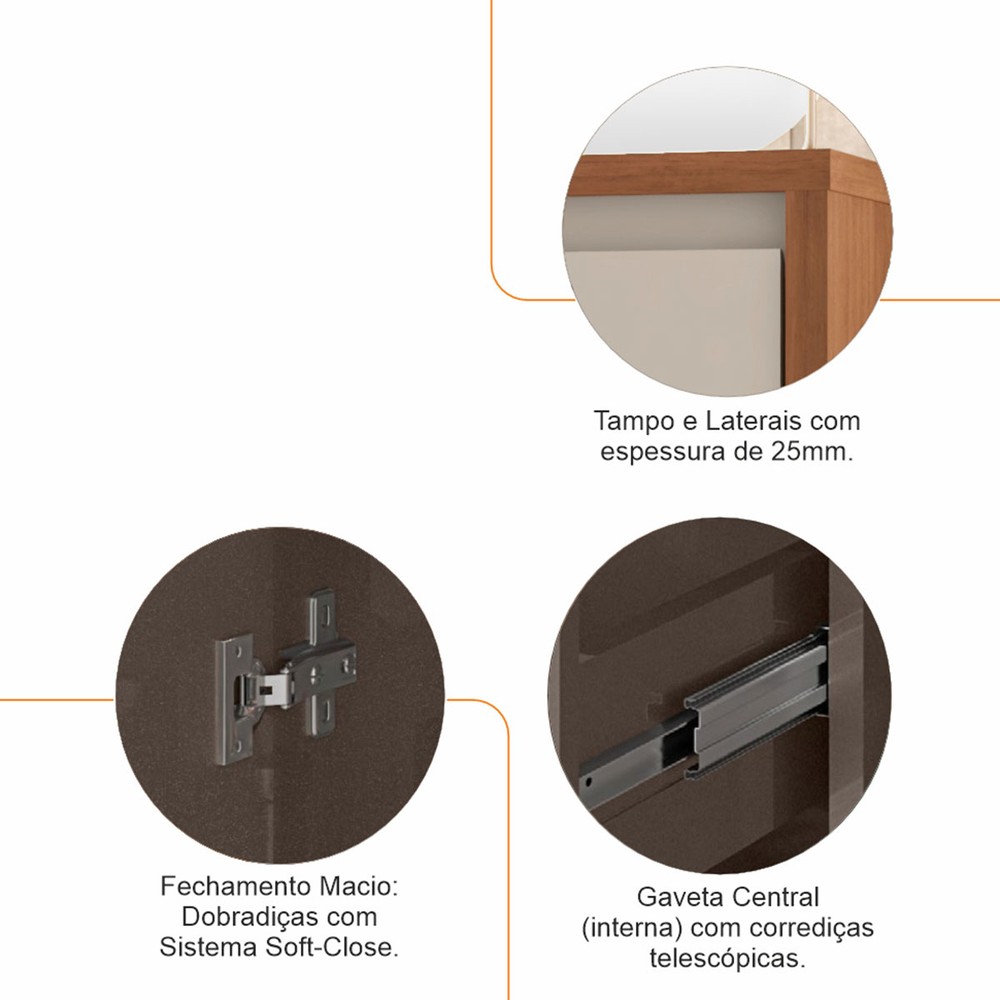 O(a) Balcão Buffet Madrid 3 Portas 1 Gaveta Hannover/Fendi - Casa D é produzido em MDF e MDP na escala de brilho Semi-Fosco, e possui um grau de dificuldade de montagem: Médio.