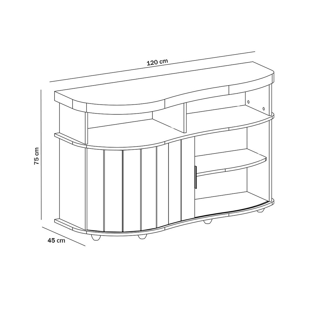 O(a) Balcão Buffet Buffet Magnum 1 Porta Flex Carvalho/Off White - Artely é produzido em MDF, MDP e Tamburato na escala de brilho Fosca com Textura, e possui um grau de dificuldade de montagem: Médio.