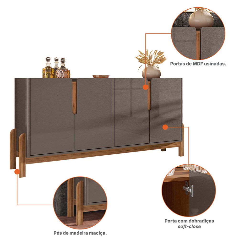 Balcão Buffet Manchester 4 Portas Cinza Perola/Cedro 050518 - Pnr Móveis