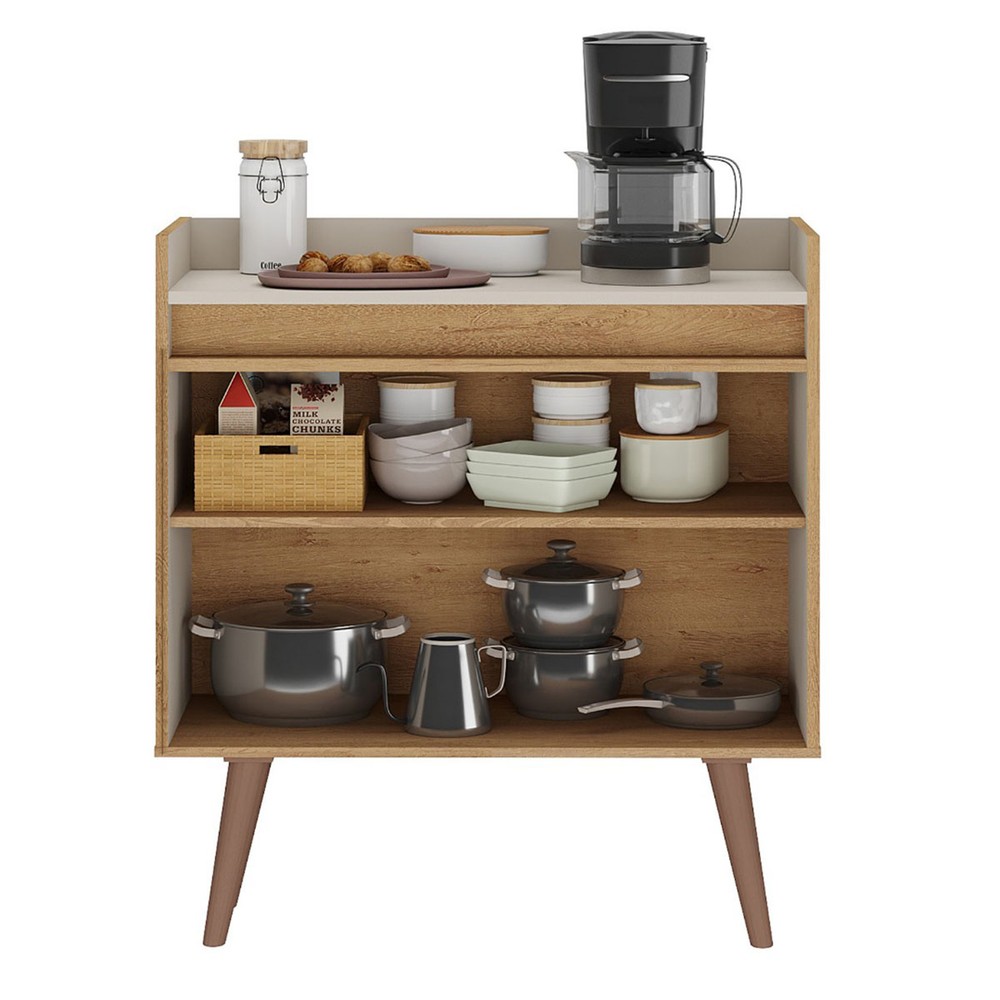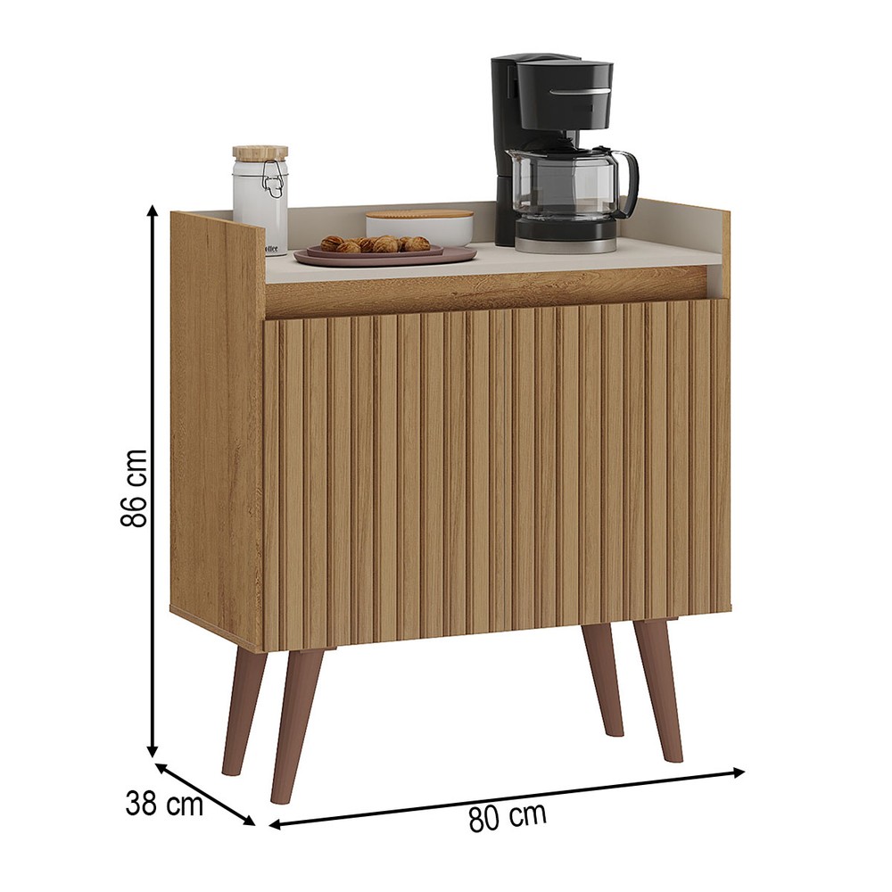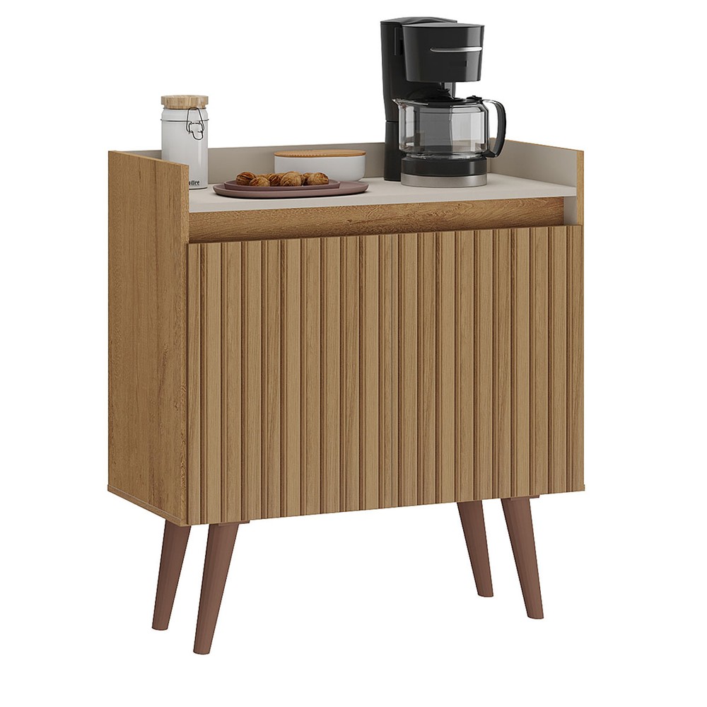 Balcão Buffet Retro 2 Portas 1 Prateleira Ripado 3d Canelato/Natura/Off White - Atualle Móveis