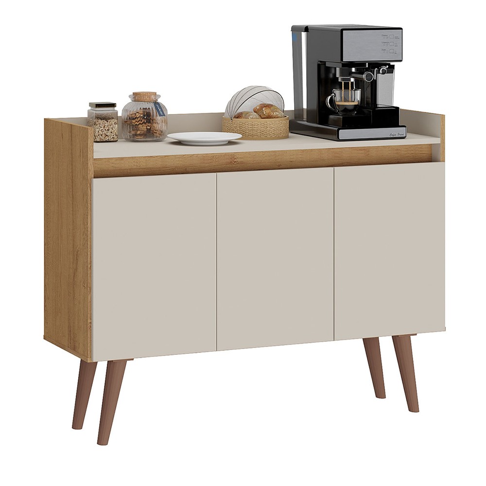 Balcão Buffet Retro 3 Portas 1 Prateleira Canelato/Natura/Off White - Atualle Móveis