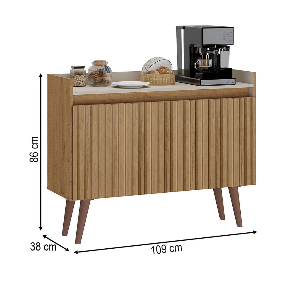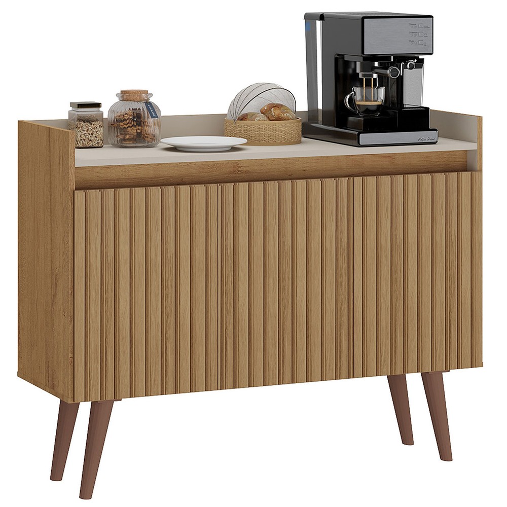 Balcão Buffet Retro 3 Portas 1 Prateleira Ripado 3d Canelato/Natura/Off White - Atualle Móveis