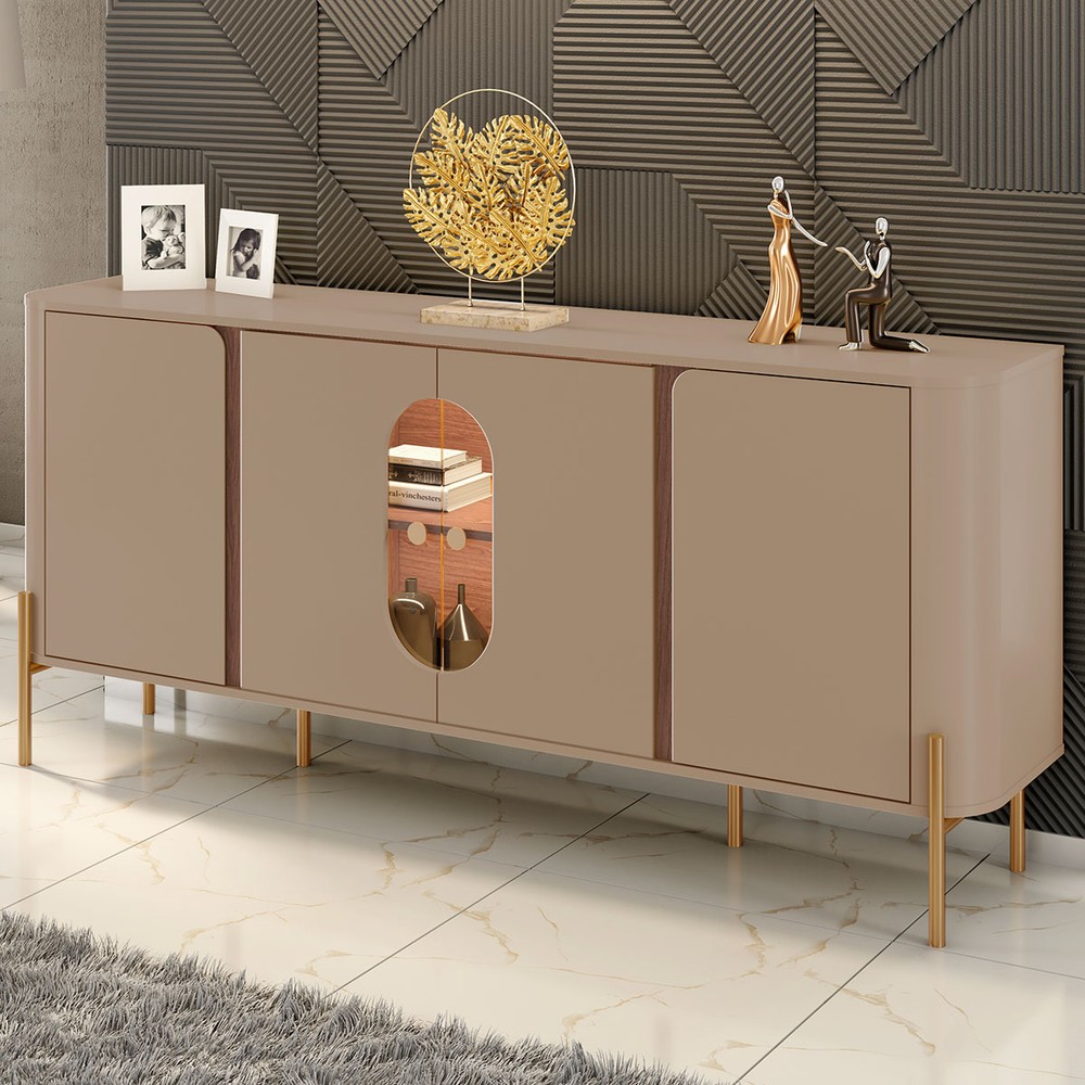 O(a) Balcão Buffet Tambaú 4 Portas 1 Prateleira com Vidro e Led Fendi/Carvalho - Móveis Bechara é produzido em MDP na escala de brilho Brilho e Fosco, e possui um grau de dificuldade de montagem: Médio.