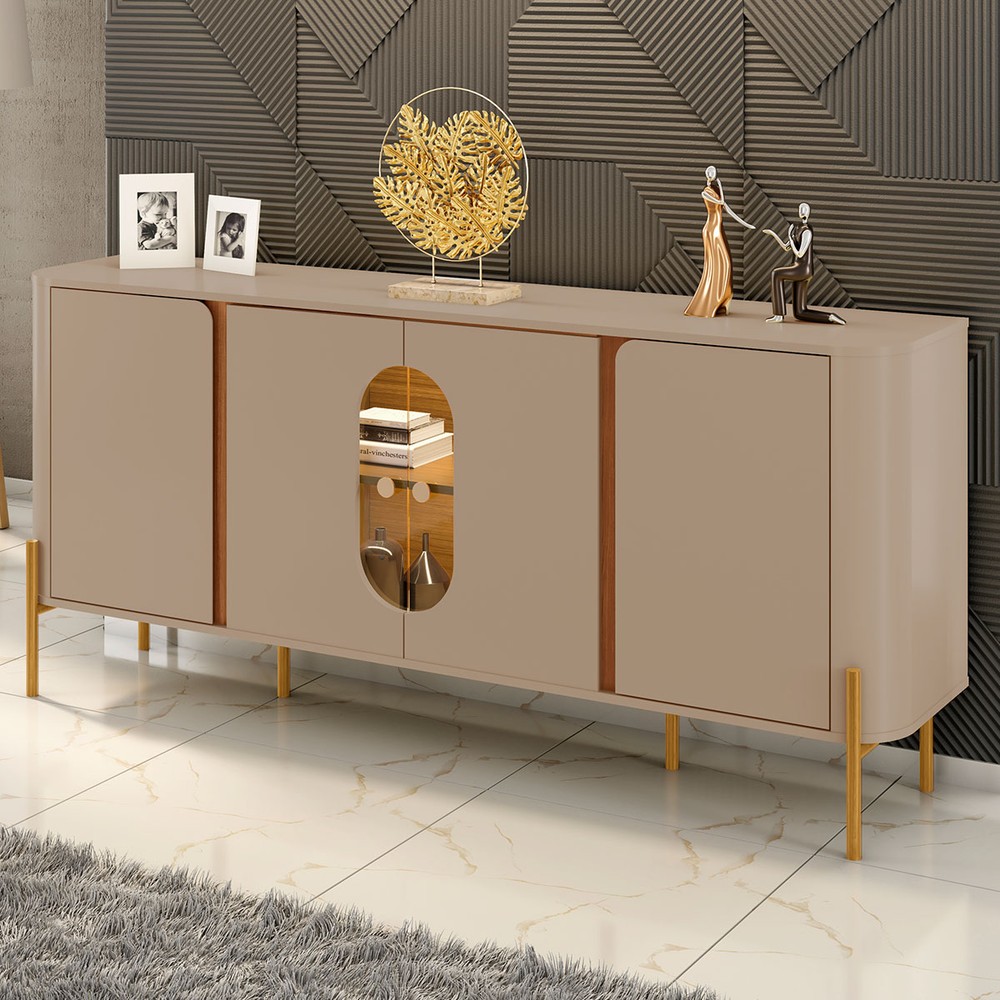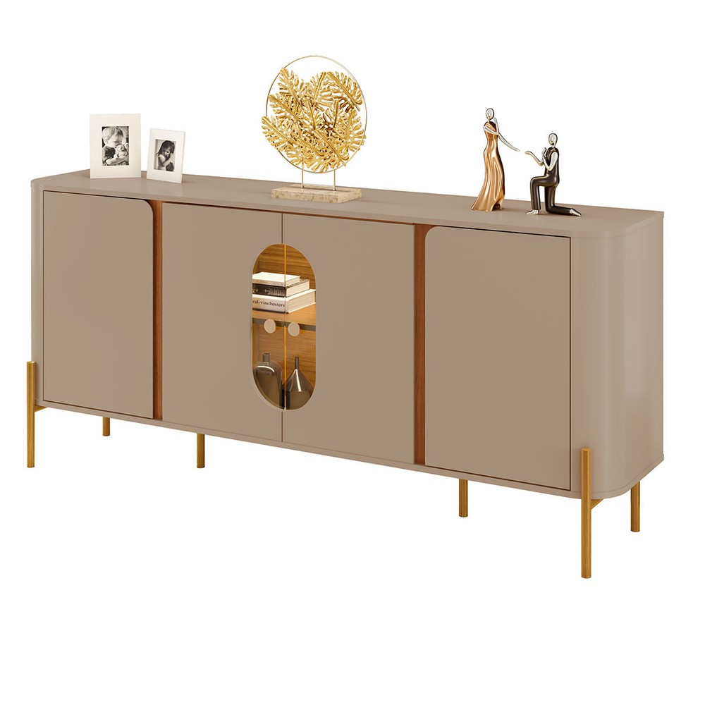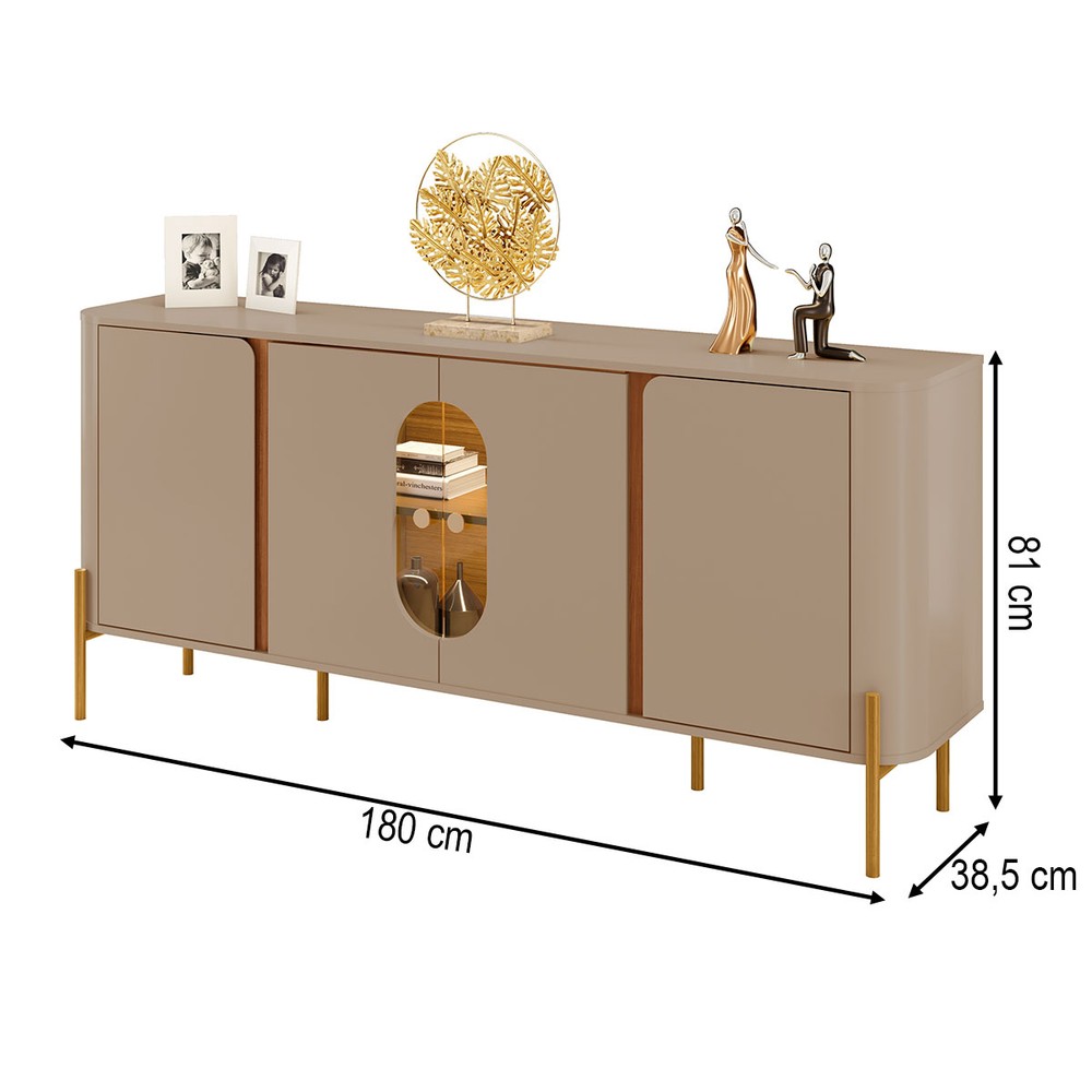 O(a) Balcão Buffet Tambaú 4 Portas 1 Prateleira com Vidro e Led Fendi/Freijó - Móveis Bechara é produzido em MDP na escala de brilho Brilho e Fosco, e possui um grau de dificuldade de montagem: Médio.