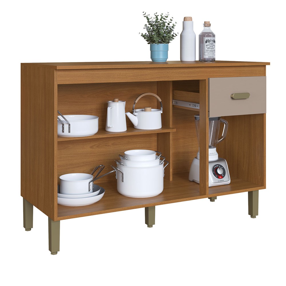 Balcão de Cozinha 120 Cm 3 Portas 1 Gaveta 6226.9 Freijó/Camurça - Indékes