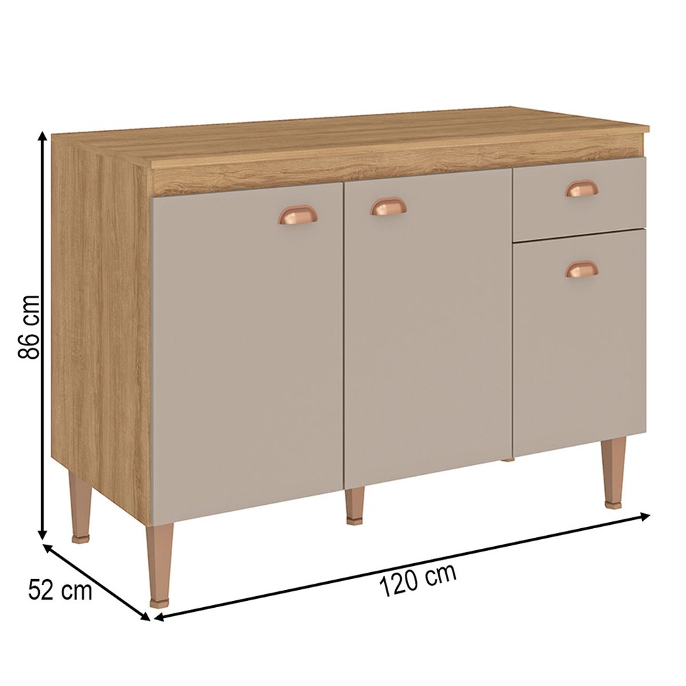 Balcão de Cozinha 120 Cm Marti 3 Portas 1 Gaveta Mel/Fendi - Fellicci