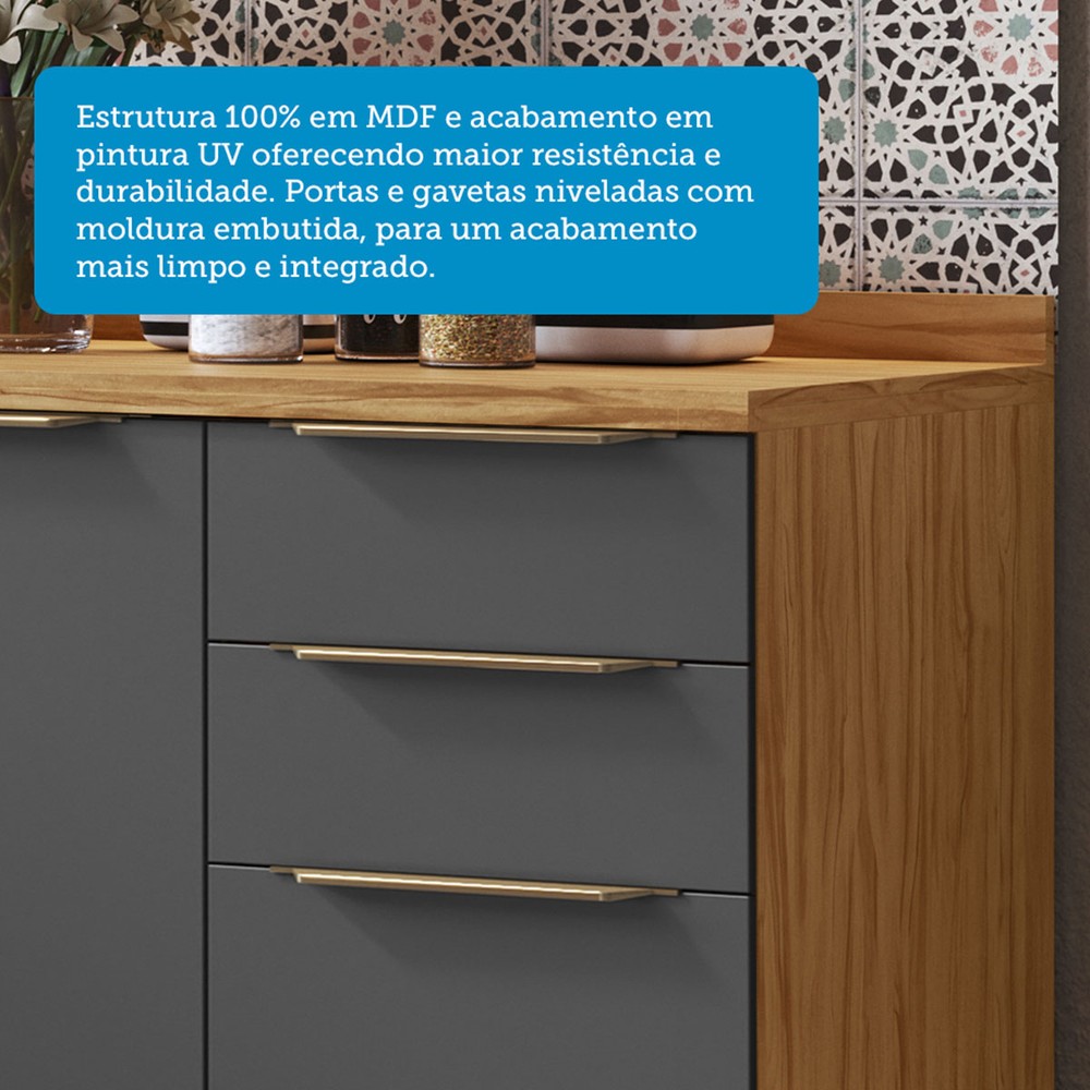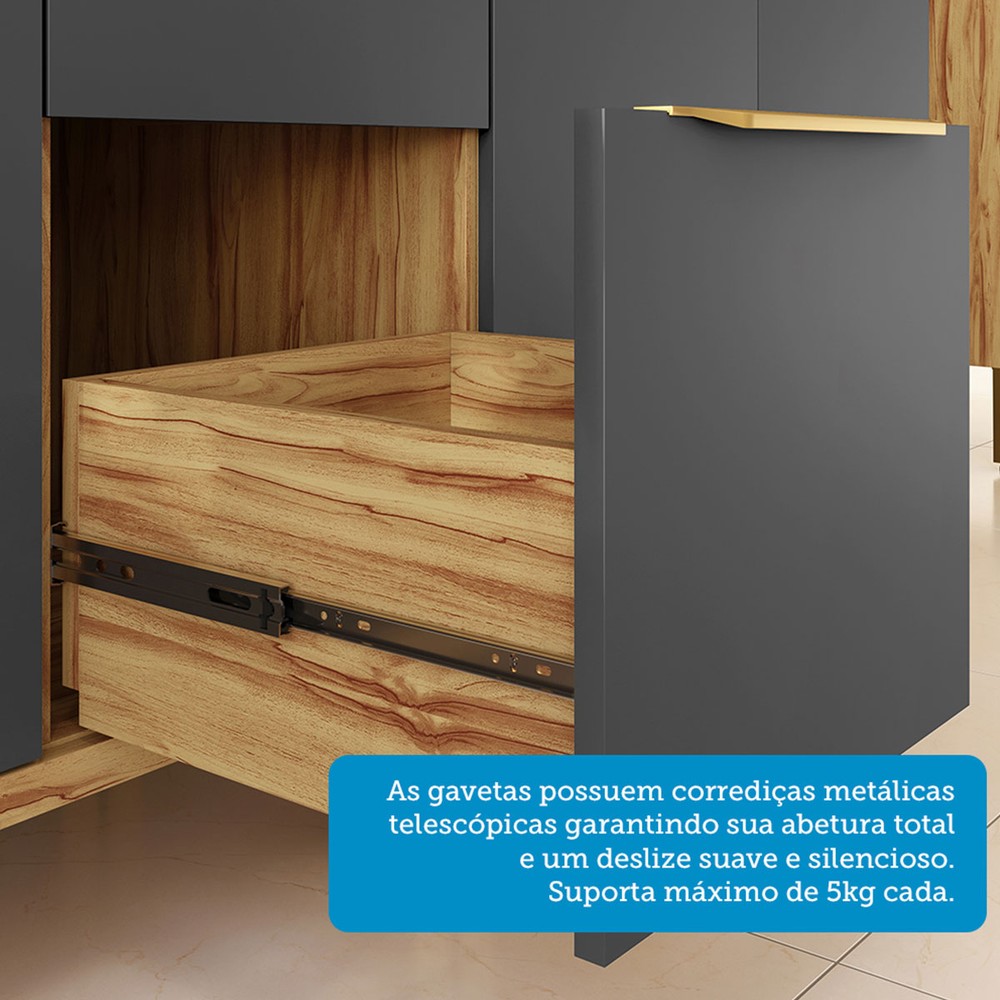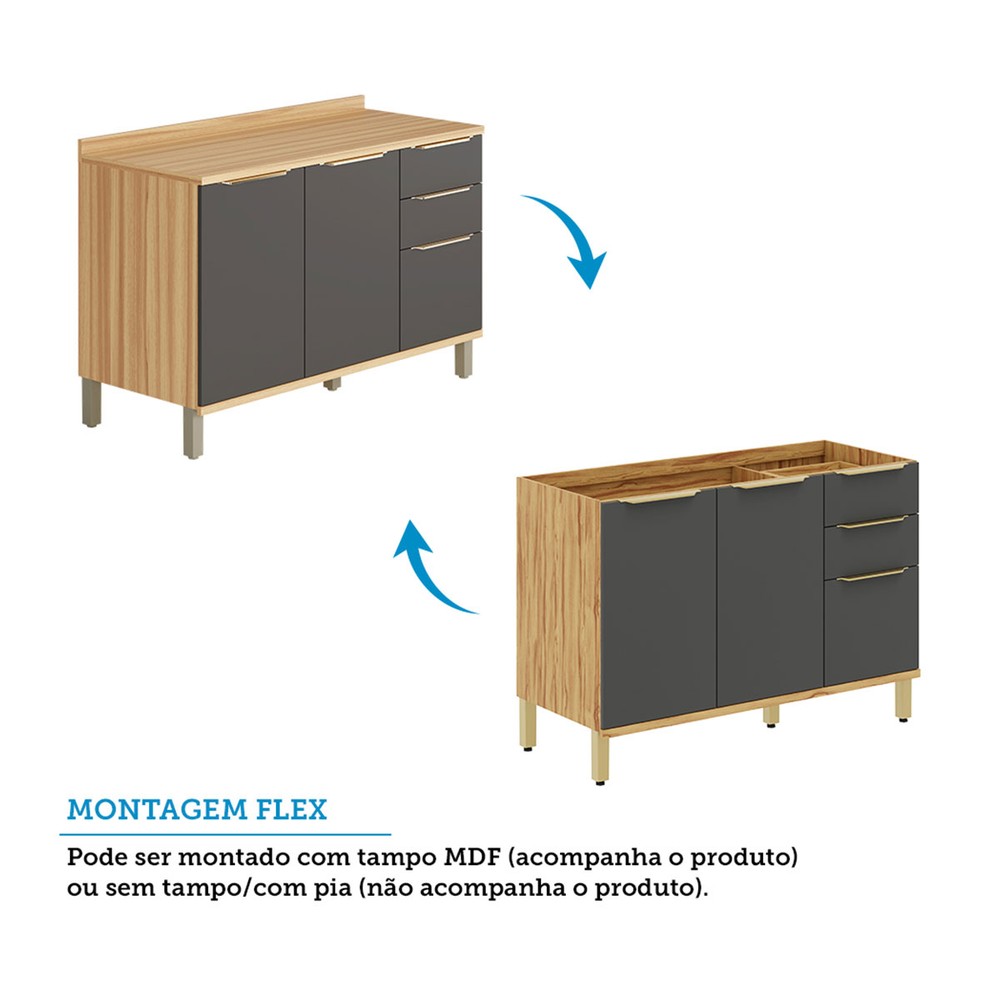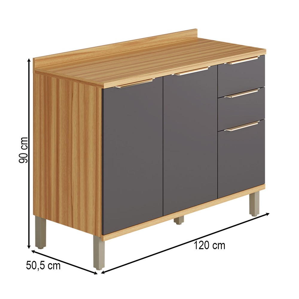 Balcão de Cozinha 120 Cm Sauvignon 2 Portas 3 Gavetas 100% Mdf Amêndoa/Chumbo - Rio Doce