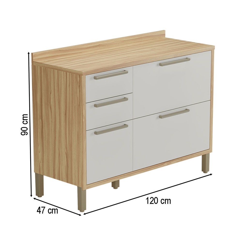 O(a) Balcão de Cozinha Syrah 1 Porta 4 Gavetas 100% Mdf Amêndoa/Off White - Rio Doce é produzido em 100% MDF na escala de brilho Semi-Brilho, e possui um grau de dificuldade de montagem: Médio.