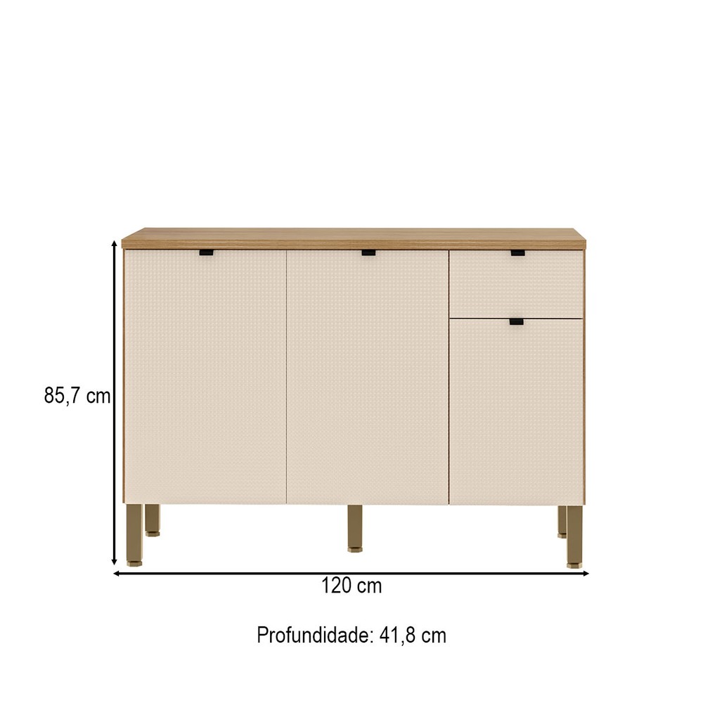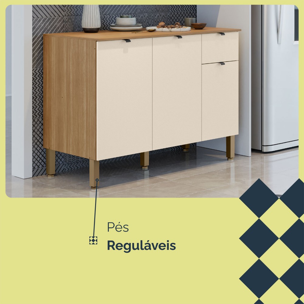 Balcão de Cozinha 120 Cm Vert Plus 3 Portas 1 Gaveta 100% Mdf Freijó/Soft - Kits Paraná