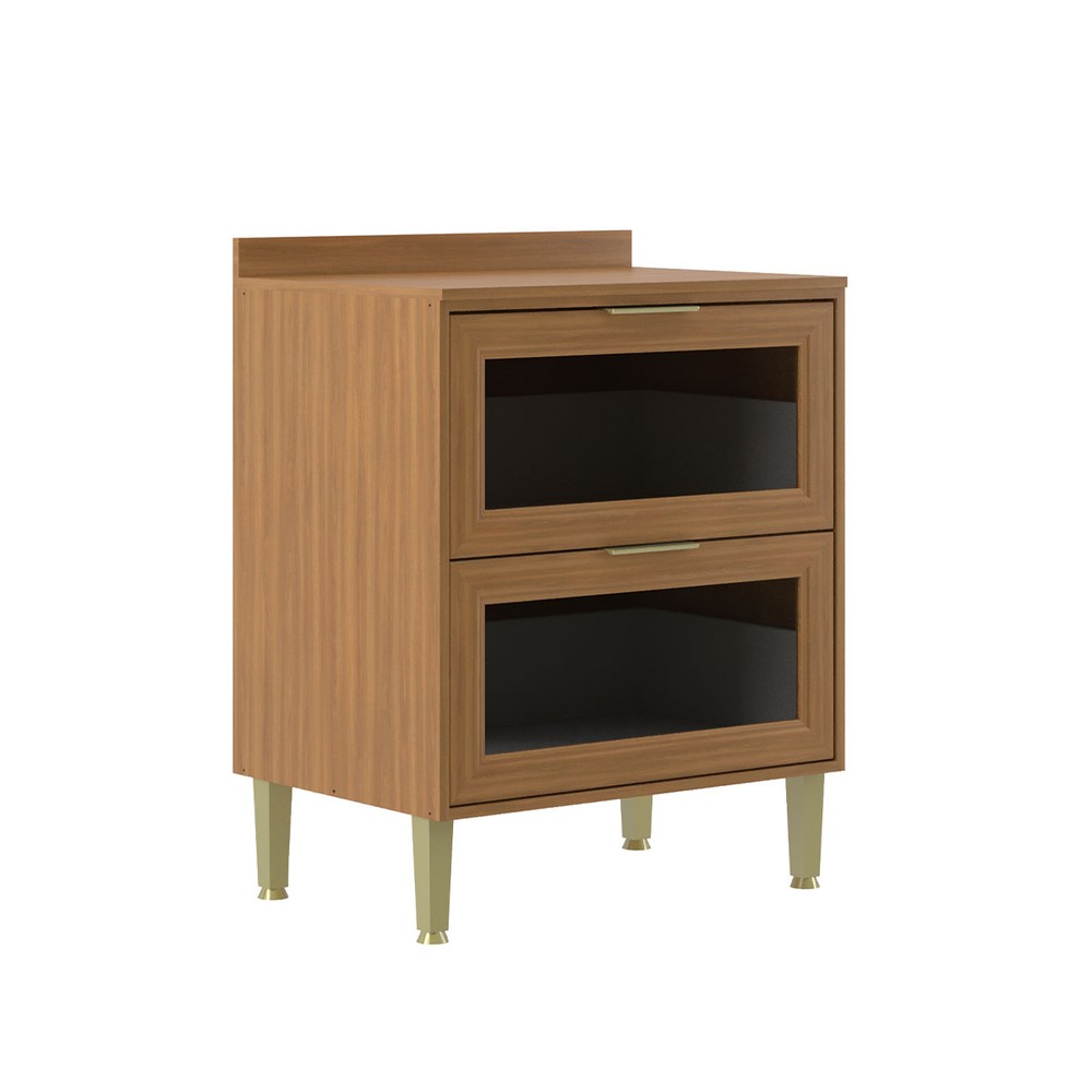 Balcão de Cozinha 70 Cm Domus 2 Gavetas com Vidro Nogal - Hecol Móveis