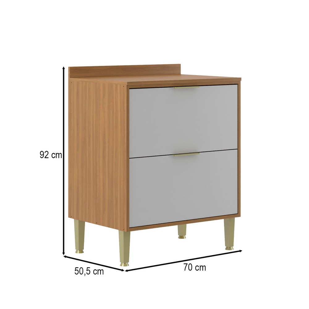 Balcão de Cozinha 70 Cm Domus 2 Gavetas Nogal/Branco - Hecol Móveis