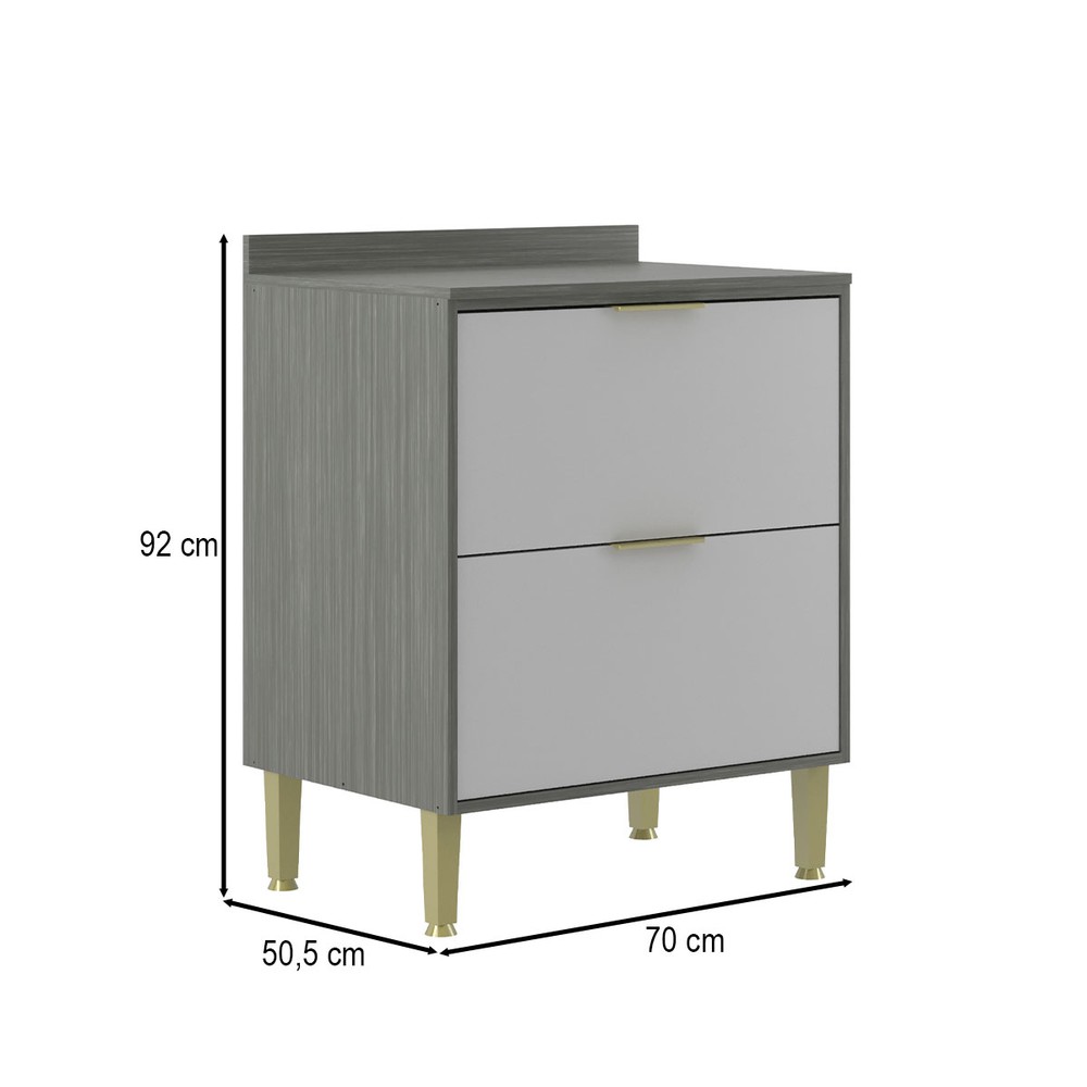 Balcão de Cozinha 70 Cm Domus 2 Gavetas Silver/Branco - Hecol Móveis