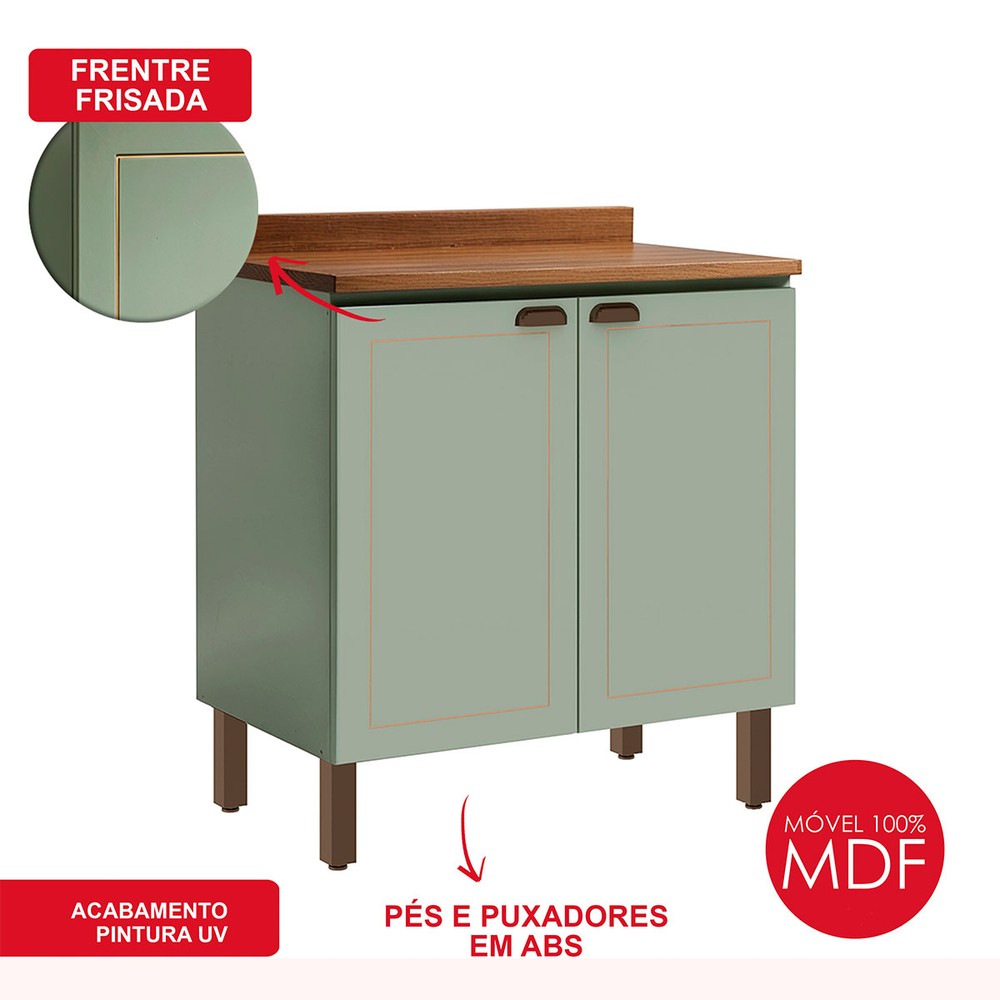 Balcão de Cozinha 80 Cm Conecta Frizz 2 Portas Mint - Geniaflex