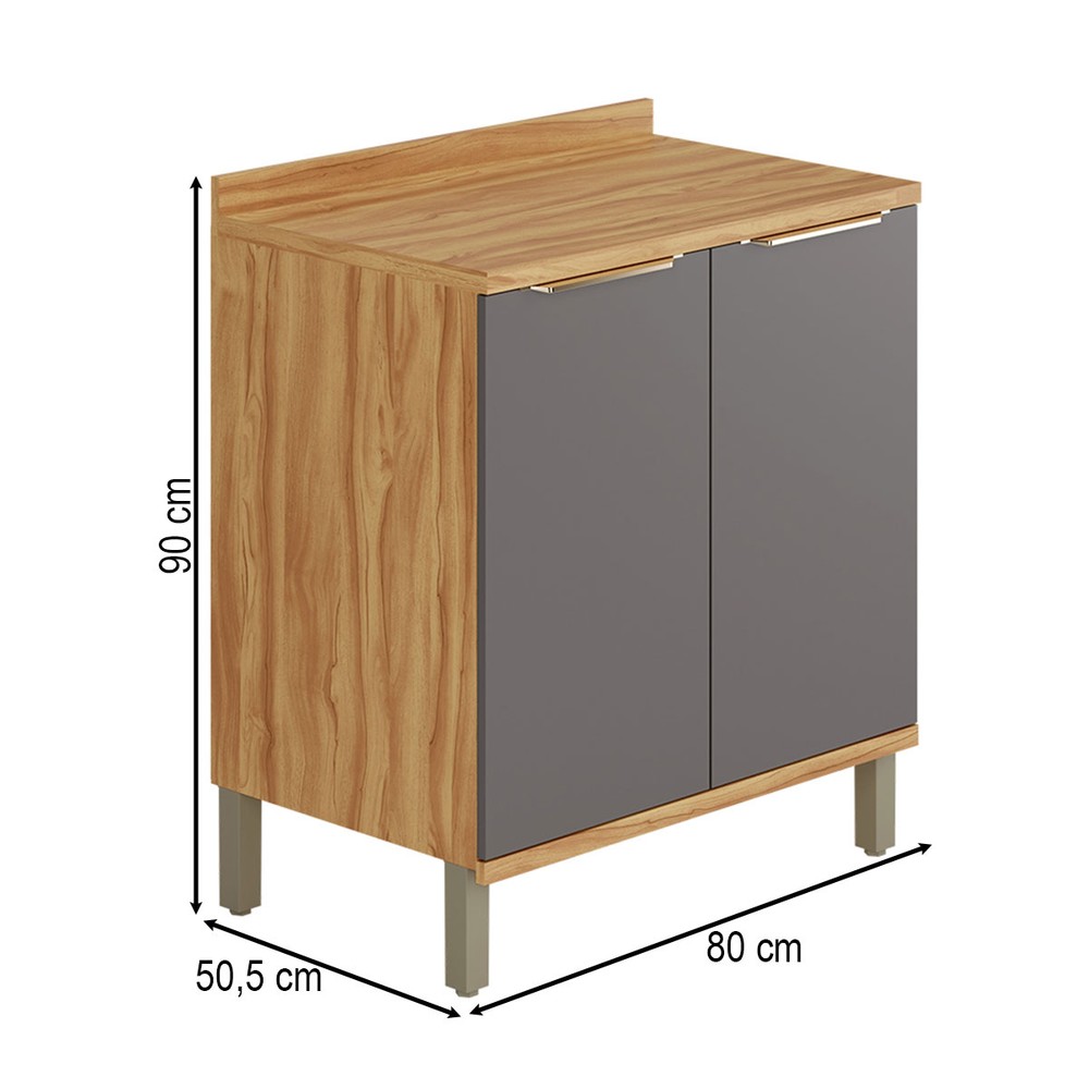 Balcão de Cozinha 80 Cm Sauvignon 2 Portas 100% Mdf Amêndoa/Chumbo - Rio Doce