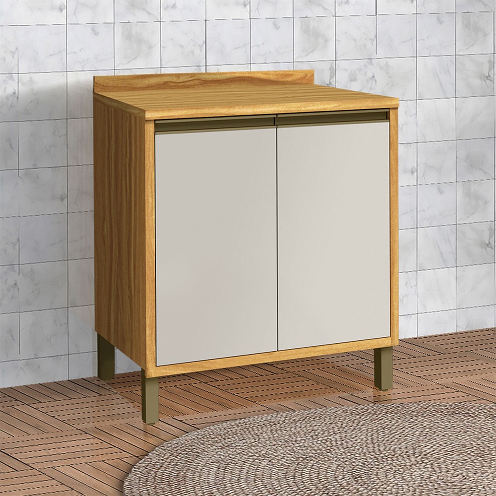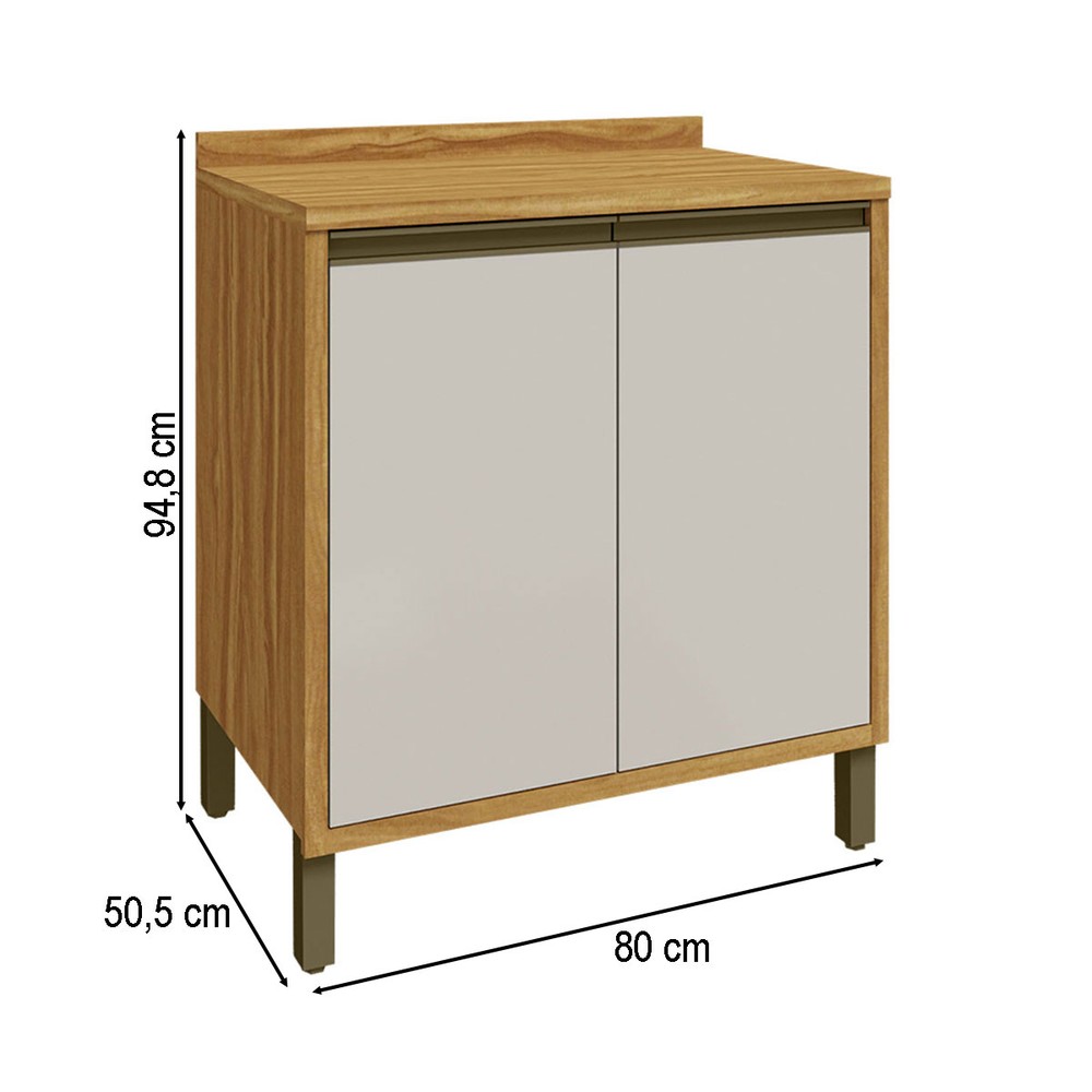 Balcão de Cozinha 80 Cm Tempranillo 2 Portas 100% Mdf Amêndoa/Off White - Rio Doce