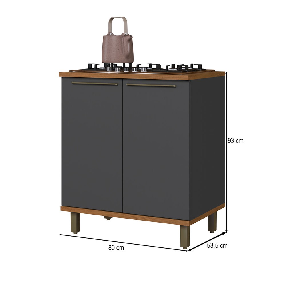 Balcão de Cozinha 80cm Munique 2 Portas Chumbo - Indekes
