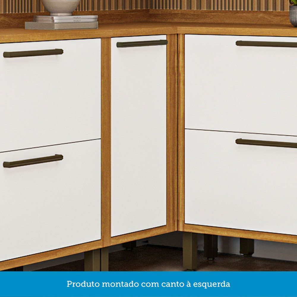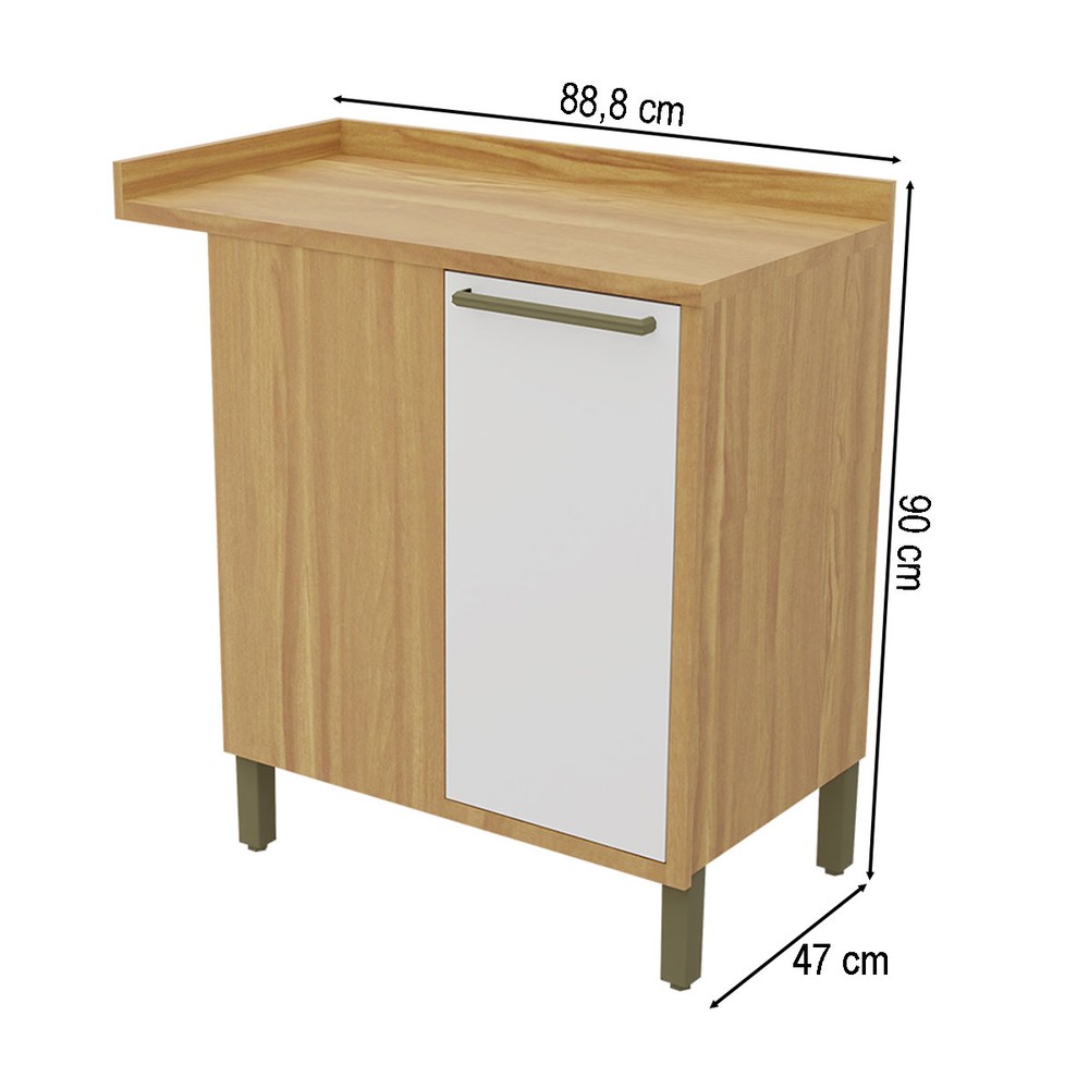 O(a) Balcão de Cozinha de Canto Syrah 1 Porta Amêndoa/Branco - Rio Doce é produzido em 100% MDF na escala de brilho Semi-Brilho, e possui um grau de dificuldade de montagem: Médio.