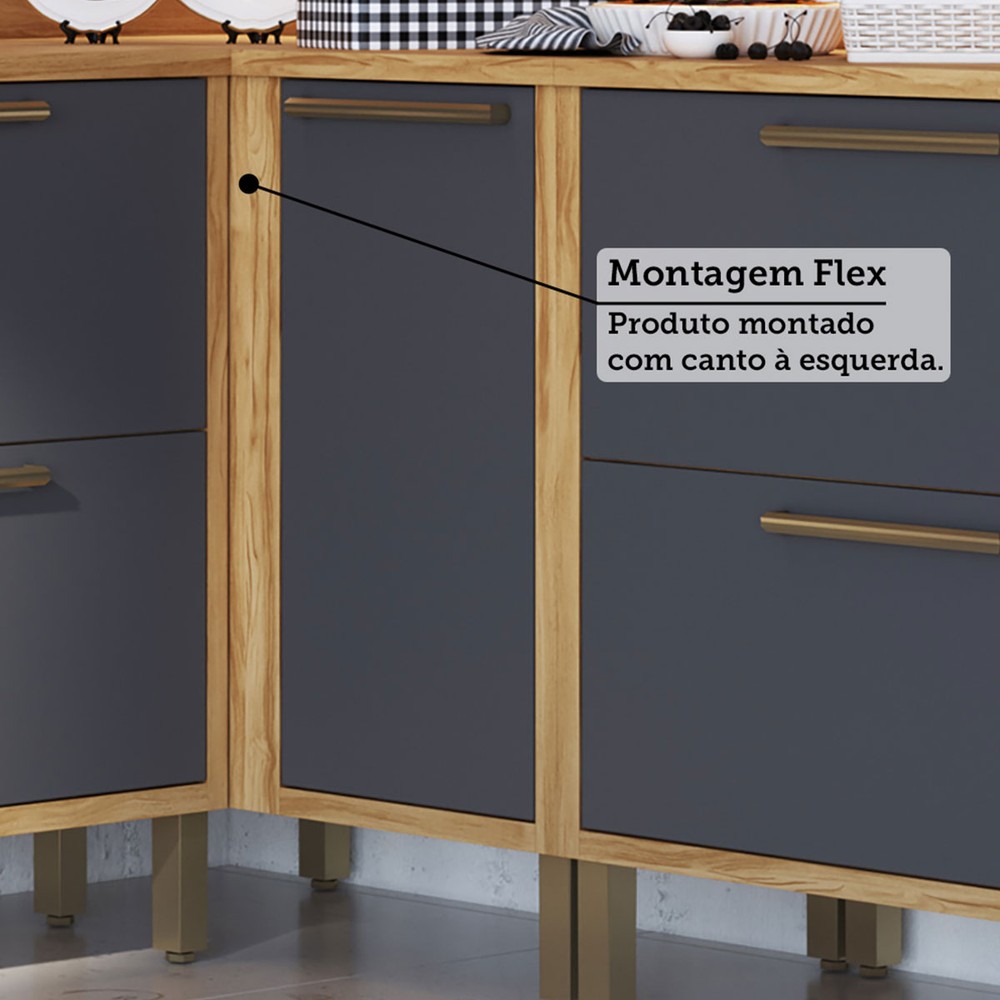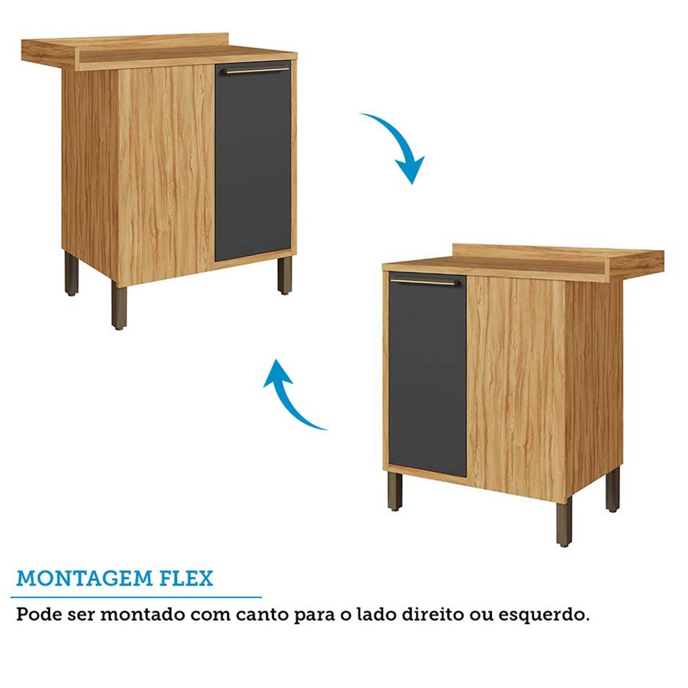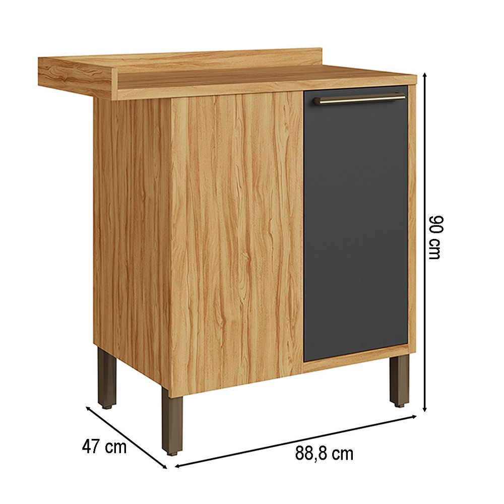 Balcão de Cozinha de Canto Syrah 1 Porta 1 Prateleira Amêndoa/Chumbo - Rio Doce