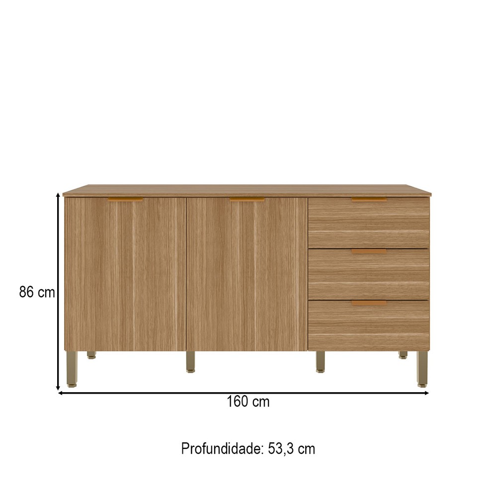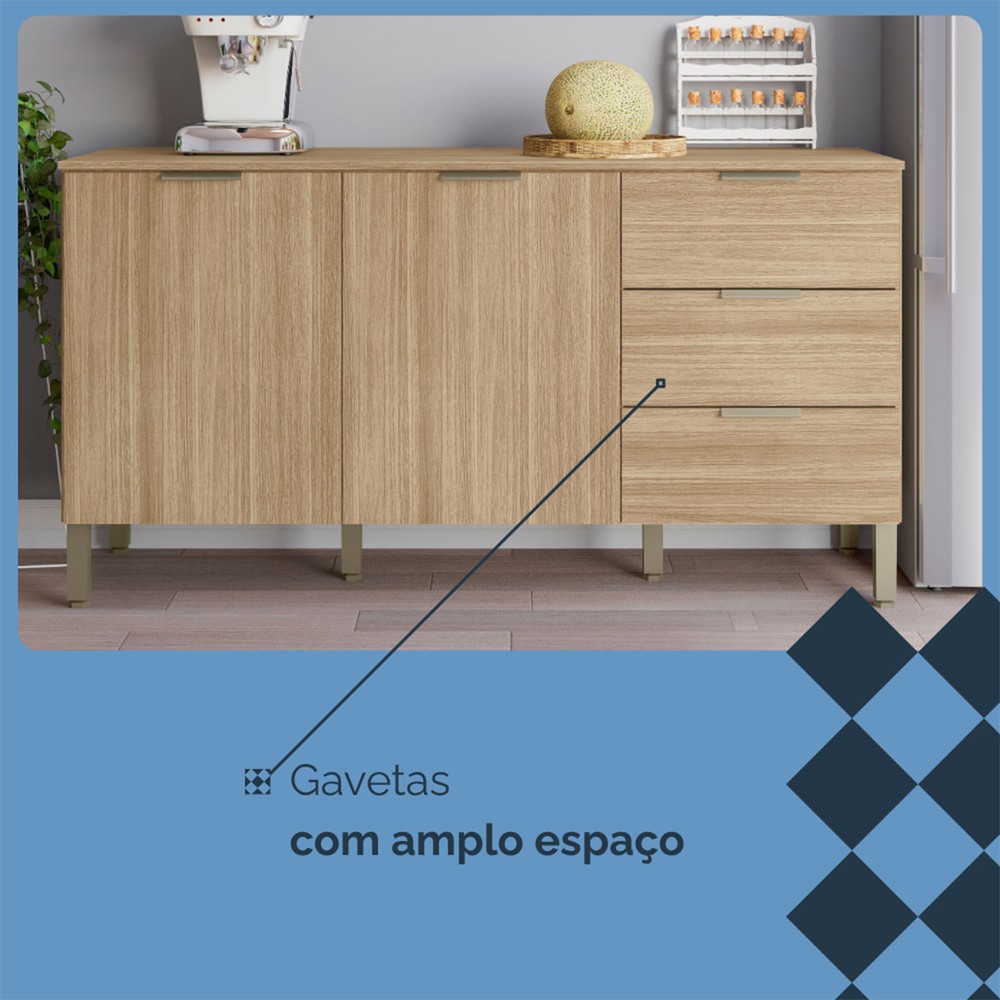 Balcão de Cozinha Glam 2 Portas 3 Gavetas Freijó - Kits Paraná