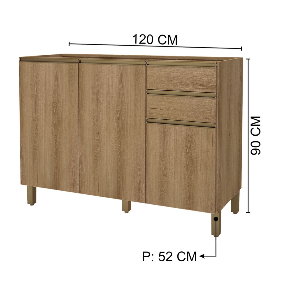 Balcão de Cozinha para Pia 120 Cm 3 Portas 2 Gavetas Castani 6123.3 - Indékes