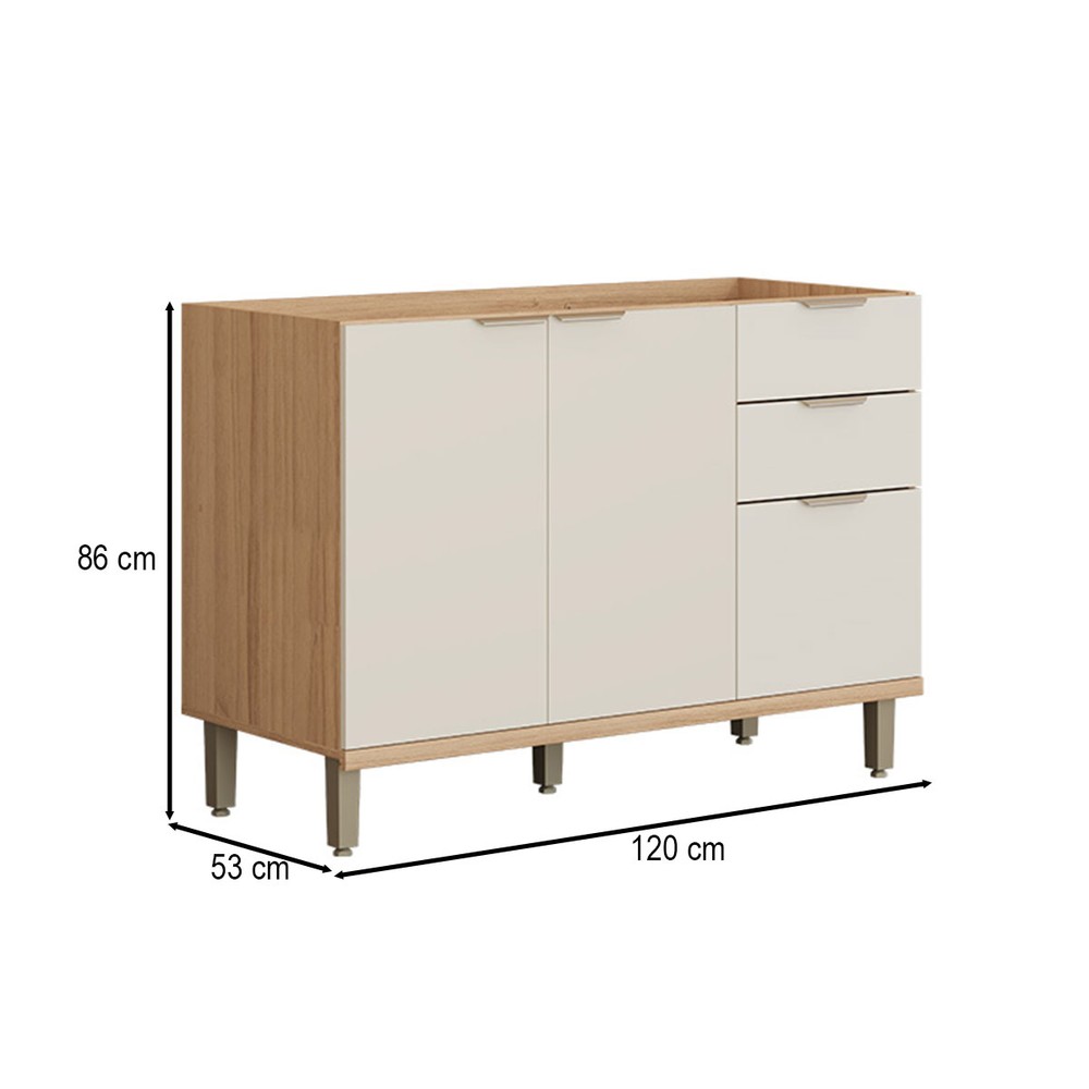 Balcão de Cozinha para Pia 120 Cm Bless 2 Portas 3 Gavetas 100% Mdf Jequitiba/Off White - Linea Brasil