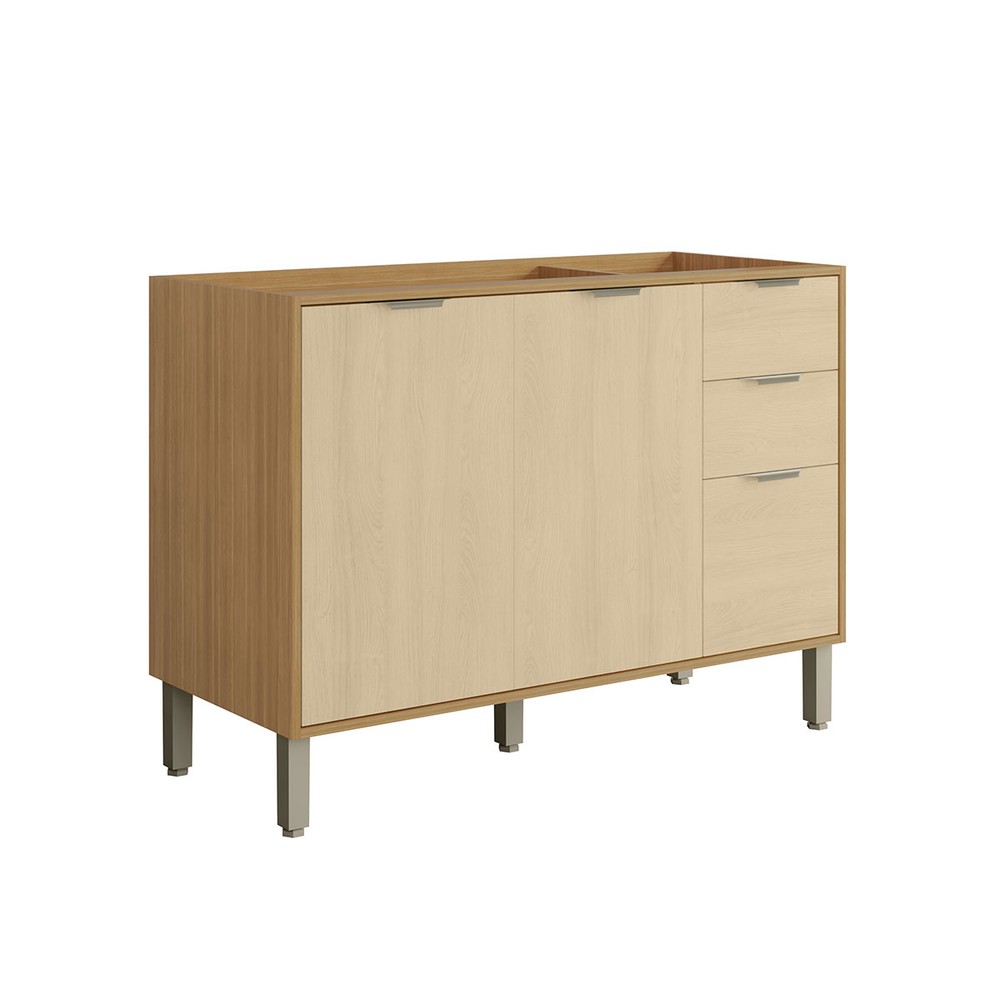 O(a) Balcão de Cozinha para Pia 120 Cm Colors 3 Portas 2 Gavetas 100% Mdf Freijó/Oásis - Kits Paraná é produzido em MDF na escala de brilho Brilho, Fosca com Textura e Fosco, e possui um grau de dificuldade de montagem: Médio.