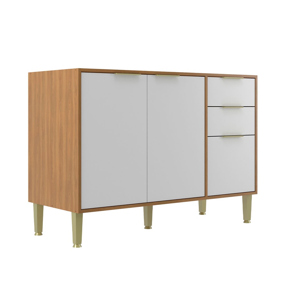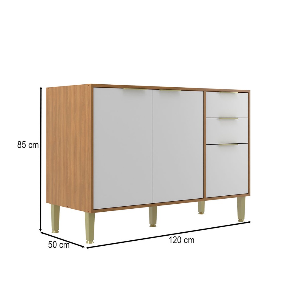 Balcão de Cozinha para Pia 120 Cm Domus 2 Portas 3 Gavetas Nogal/Branco - Hecol Móveis