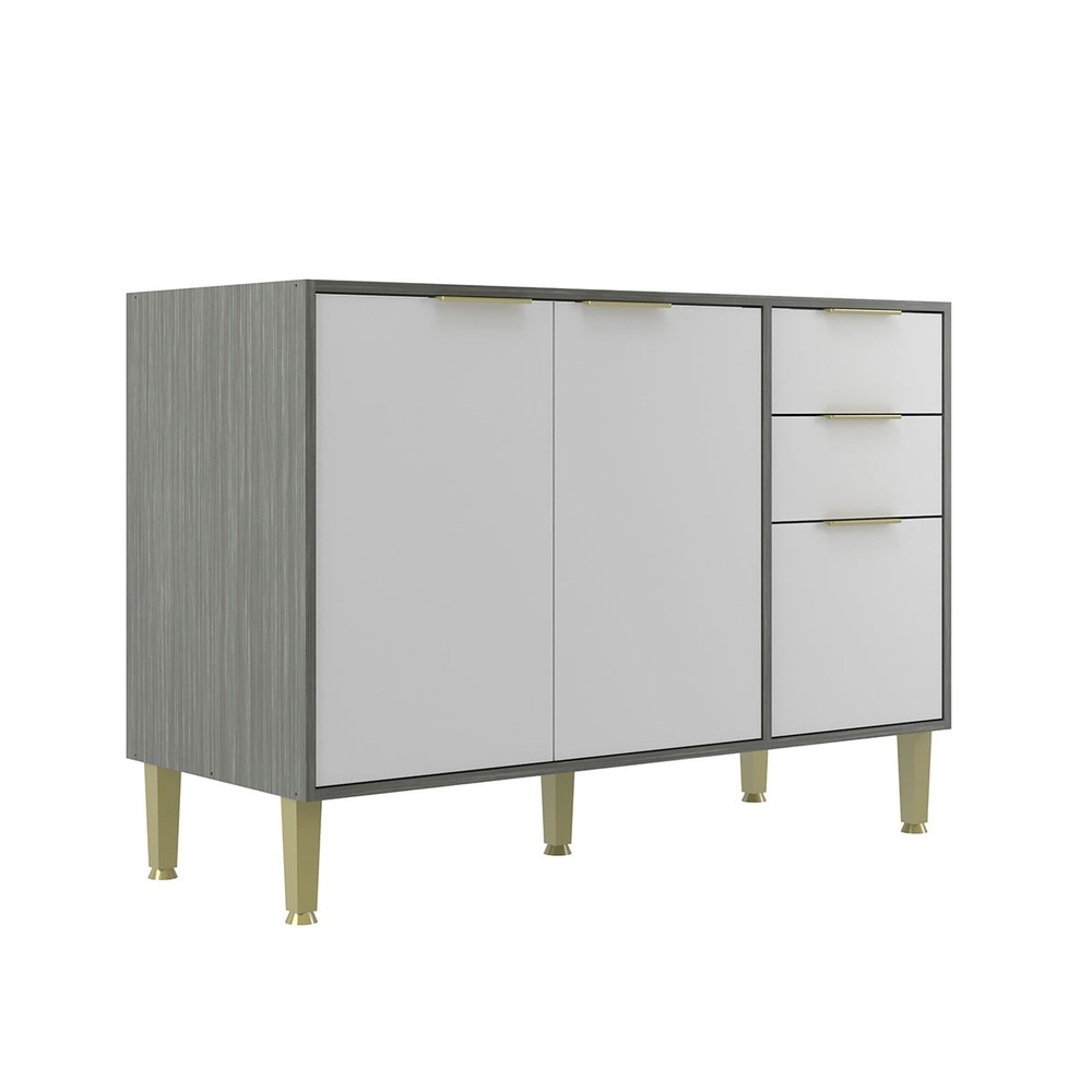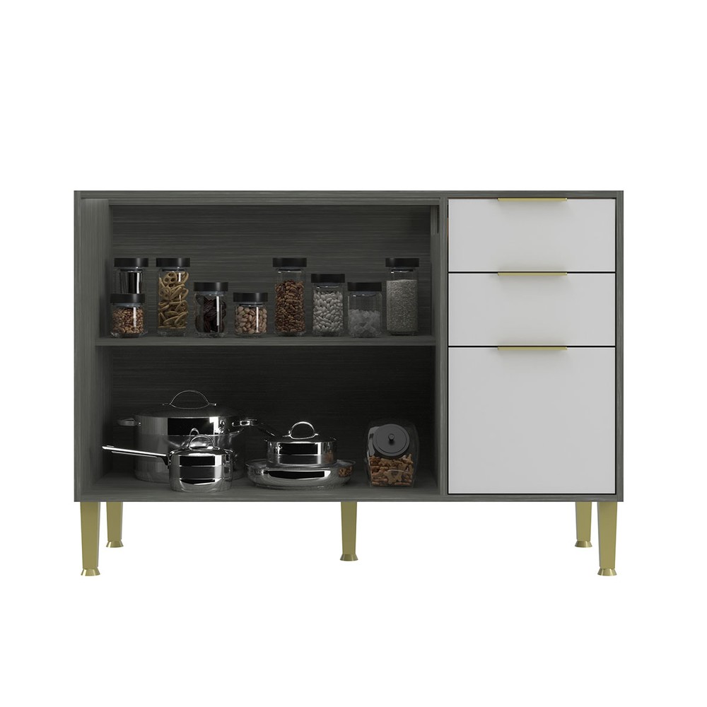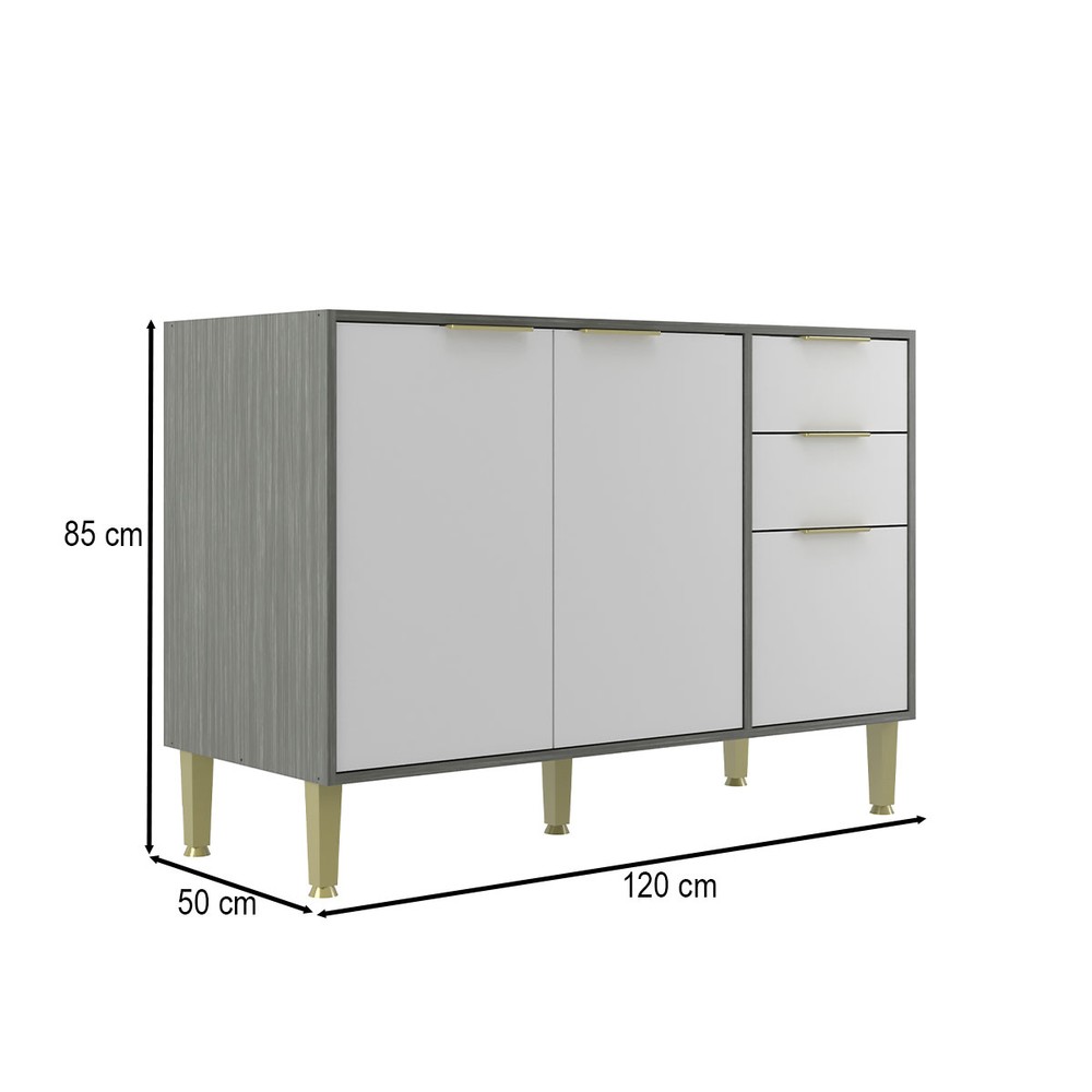 Balcão de Cozinha para Pia 120 Cm Domus 2 Portas 3 Gavetas Silver/Branco - Hecol Móveis
