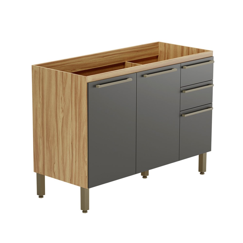 O(a) Balcão de Cozinha para Pia 120 Cm Napoli 3 Portas 2 Gavetas 100% Mdf Amêndoa/Chumbo - Rio Doce é produzido em 100% MDF na escala de brilho Semi-Brilho, e possui um grau de dificuldade de montagem: Médio.
