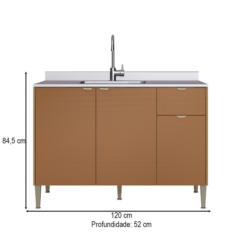Balcão de Cozinha para Pia 120 Cm Soul 3 Portas 1 Gaveta Freijó/Caramelo - Kits Paraná