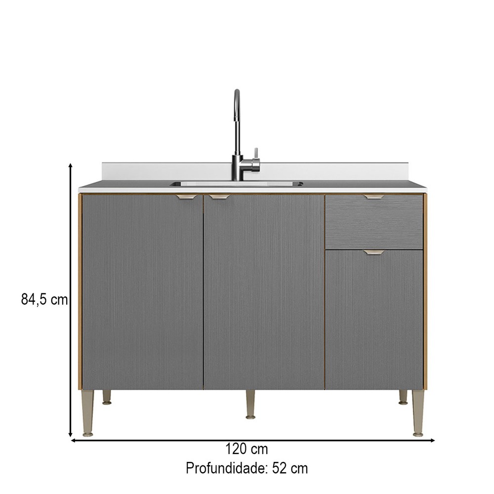 Balcão de Cozinha para Pia 120 Cm Soul 3 Portas 1 Gaveta Freijó/Gris - Kits Paraná