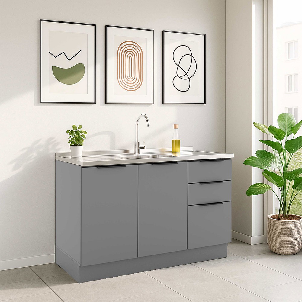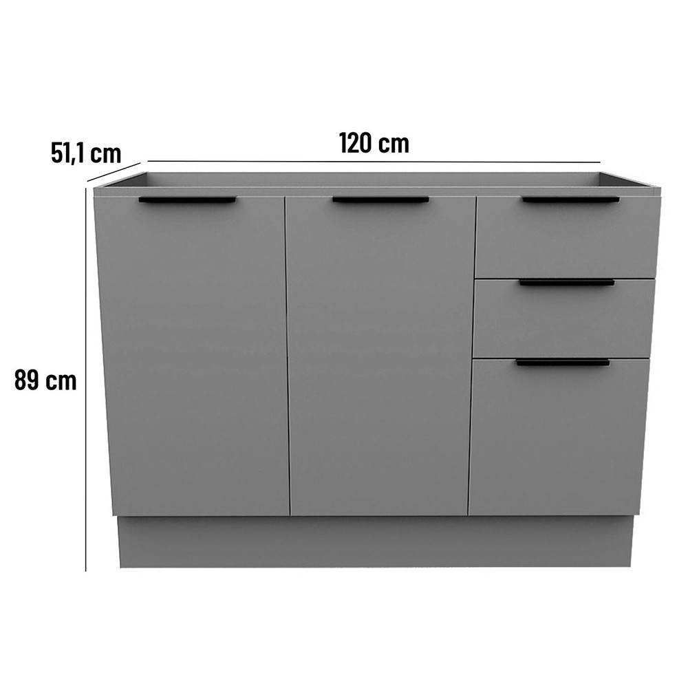 Balcão de Cozinha para Pia 120cm Lumina 2 Portas 3 Gavetas Cinza - Telasul