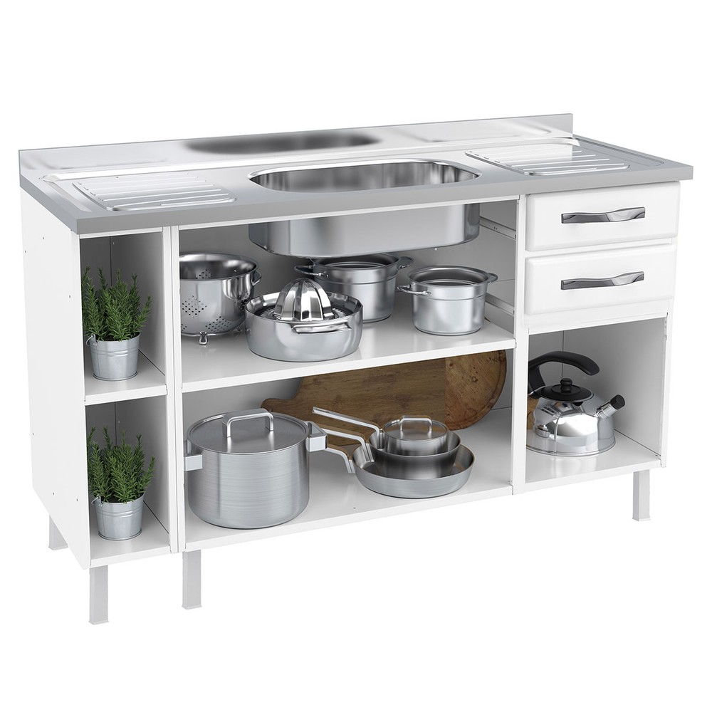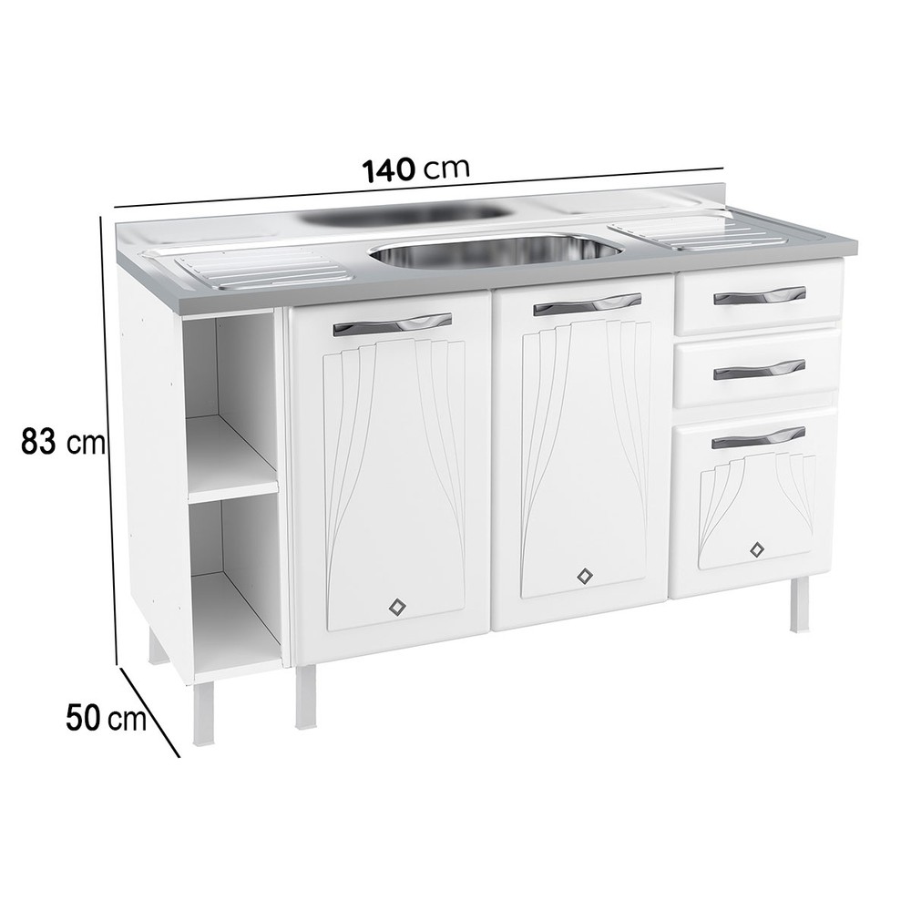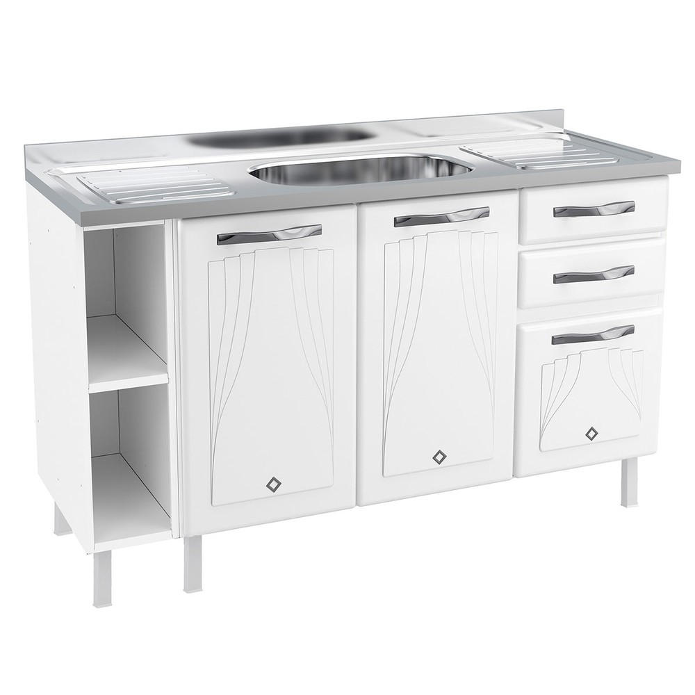 Balcão de Cozinha para Pia 140 Cm Star New 3 Portas 2 Gavetas Branco - Telasul