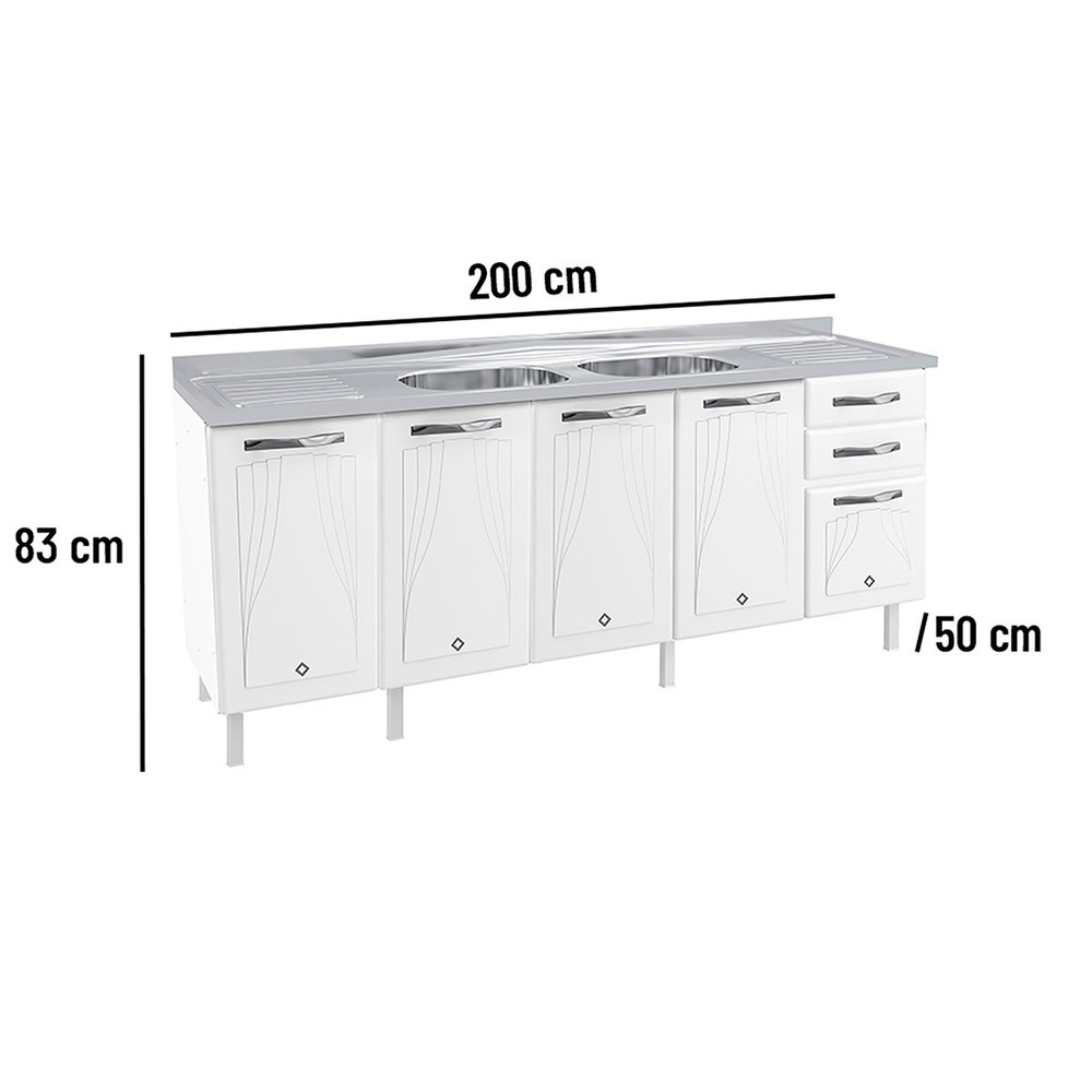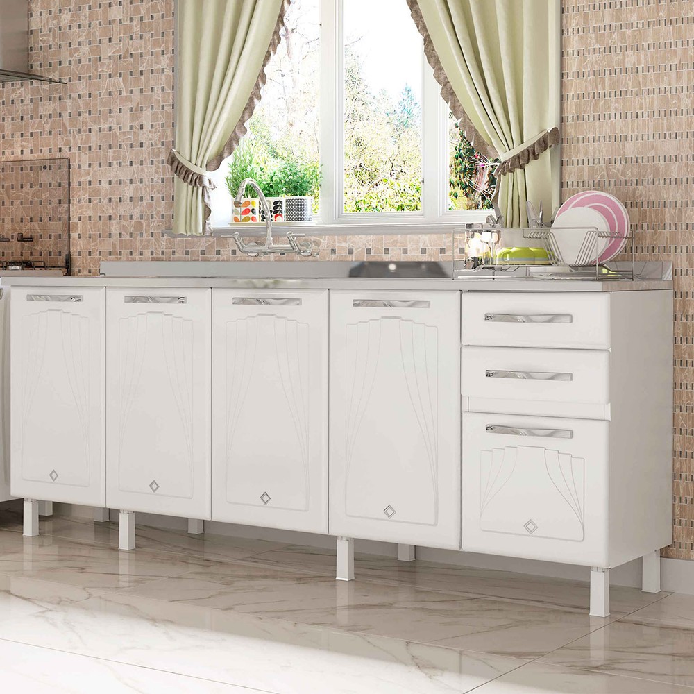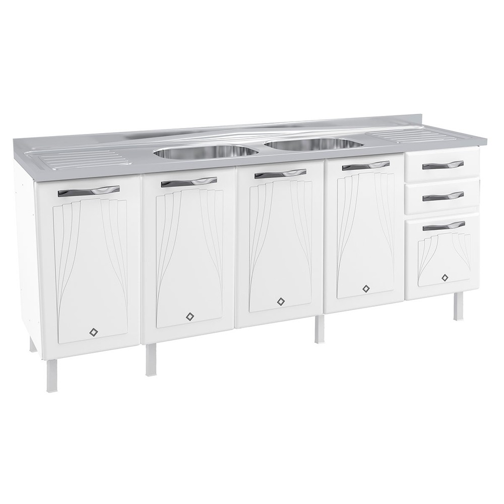 Balcão de Cozinha para Pia em Aço Star New 5 Portas 2 Gavetas Branco - Telasul