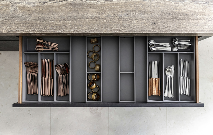 Usar divisórias para talheres e utensílios no geral é muito importante, isso porque ter esses organizadores ajuda a ter uma gaveta funcional, evitando a bagunça entre os talheres. Essas divisórias também conseguem maximizar o uso interno da gaveta, garantindo uma organização otimizada em todos os espaços, e apesar de parecer um detalhe bobo, quando os talheres estão separados de forma eficiente você consegue encontrar facilmente o que precisa durante o preparo das refeições. Essas divisões também garantem uma limpeza mais funcional e prática de limpar.