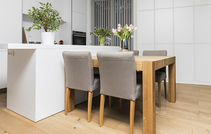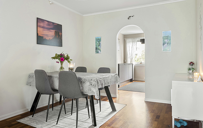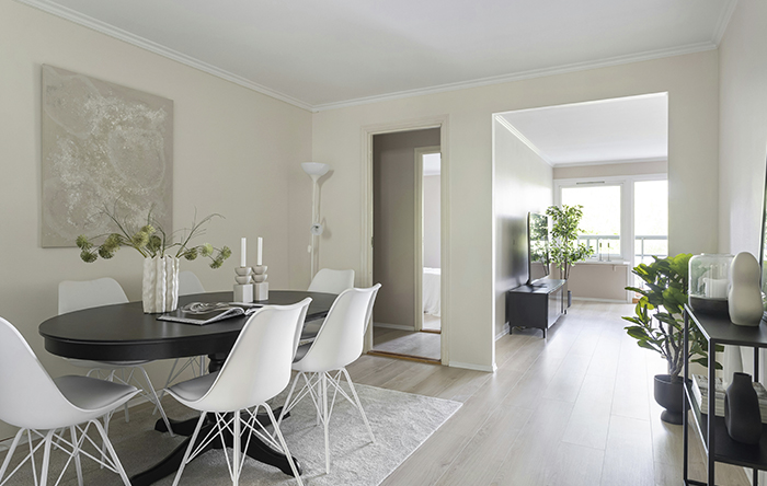 Para a sala de jantar pequena é importante prestar muita atenção na escolha da cor e do acabamento do seu móvel. A melhor opção são as cores claras, isso porque elas ajudam a ampliar visualmente o espaço, por isso, opte por modelos brancos, bege, off-white e cinza mais claros, trazendo a leveza junto do ambiente. Além disso, escolha cores que combinem com o estilo decorativo, por exemplo o cinza pode combinar com o estilo moderno e industrial.
