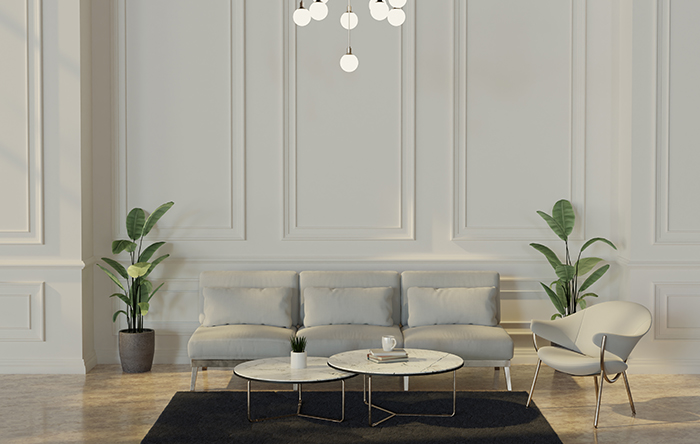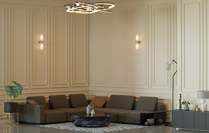 Estilo Moderno: Já o estilo moderno foca mais em linhas sutis e elegantes, fazendo como se fosse uma releitura do estilo clássico. Na maioria das vezes o tipo de moldura é mais liso, reto e sem detalhes muito trabalhados, o estilo de aplicação na parede é com quadros retos e quadros retos com formas retangulares ou quadrados, deixando um toque minimalista, principalmente quando usados da mesma cor, e por ser mais moderno, as cores variam para tons como preto, cinza ou azul.