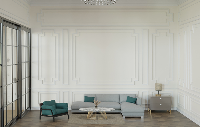 Boiserie de Poliuretano e Poliestireno: São dois materiais muito populares por serem leves, resistentes e terem uma instalação mais prática. Ele também permite que você personalize o estilo de boiserie.