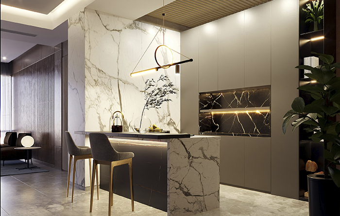 A iluminação com toda certeza é um item indispensável, tanto para a decoração quanto para a eficiência da sua bancada de cozinha. Você pode combinar as luzes focais com as luzes decorativas, para o preparo dos alimentos e destacar o design. O primeiro passo é usar uma iluminação com pendente, que deixa um destaque para toda sua cozinha, ele deve ficar entre 70 a 90 centímetros acima da bancada, ideal para te ajudar a visualizar bem o preparo das refeições.