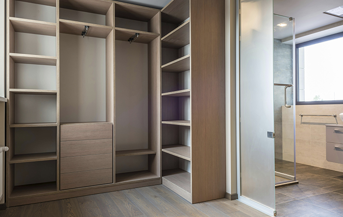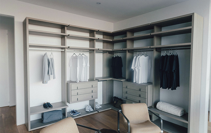 Com o closet sem suas roupas, você já consegue ter uma ideia melhor de como organizar e dispor os itens em caixas, gavetas e cabides, planejando um layout que facilite a organização diária e agrupando os itens por categorias.
