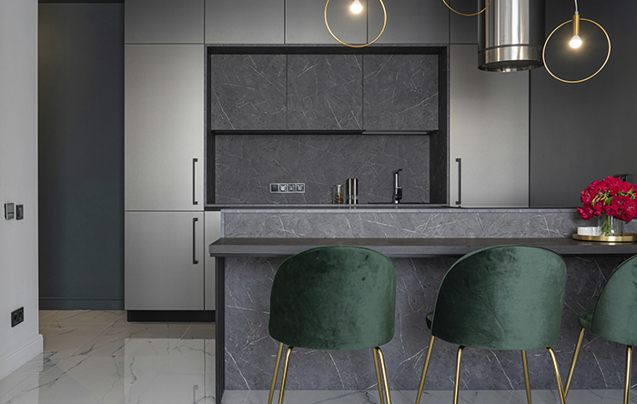 Agora que sabemos de tudo que precisamos sobre a parte de cores e os detalhes, podemos pensar quais são os melhores materiais para usar na cozinha cinza.