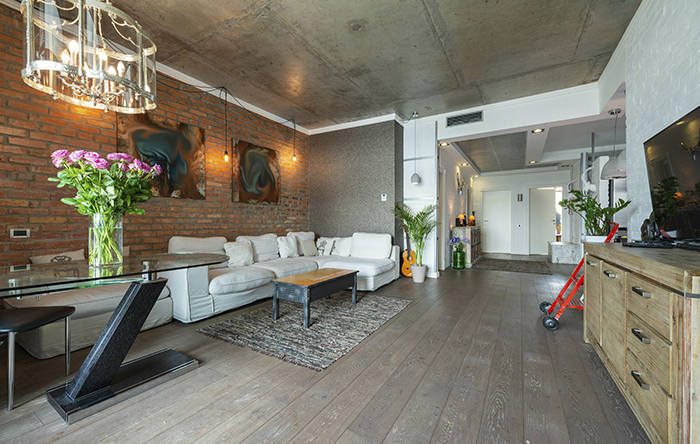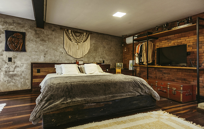 Esse é um estilo que usa muito tijolos aparentes e concreto exposto, sendo crucial entender como equilibrar esses dois sem deixar o ambiente áspero. Normalmente usamos o tijolo aparente em uma parede principal em cada ambiente, para ter um ponto de foco, o que facilita equilibrar o concreto ou cimento queimado nas outras superfícies. Outra coisa que pode ajudar a equilibrar esses dois é usar o metal preto ou a madeira junto, fazendo uma proporção de 60 - 30 - 10, onde na parte maior vai ser usado o concreto, os tijolos aparentes vão ficar em pontos focais e equilibrados com o metal preto e madeira nos 10% restantes, assim você tem um ambiente equilibrado. Para simplificar essa dica: