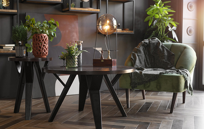 Como já dito antes, as madeiras de demolição são as mais usadas nesse estilo decorativo. Isso porque, além da madeira de demolição criar um contraste equilibrado entre o frio do concreto com o quente da madeira envelhecida, ela também consegue ressignificar a América antiga e trazer um novo uso à madeira que ia ser jogada fora.