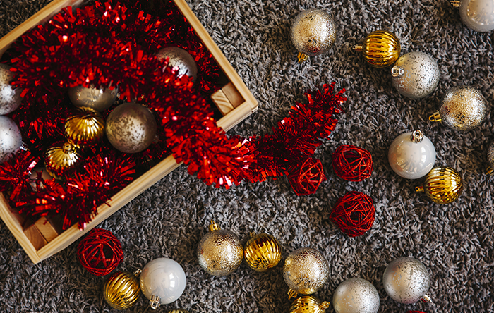 Depois da limpeza e triagem, você precisa guardar as decorações, mas sabia que existe um jeito certo para isso? Depois de tirar todos os itens, você deve fazer uma limpeza nos enfeites, removendo a poeira e sujeira com um pano macio. Para panos de mesa e armário, você deve levar para uma limpeza mais completa. Depois disso, comece a organizar seus enfeites e decorações por categorias como: enfeites frágeis (Bolas, Porcelanas), luzes (Pisca-pisca), Guirlandas e Festões e a árvore de Natal. Isso vai facilitar tanto para a próxima decoração quanto para uma melhor organização. Para os enfeites frágeis, você deve usar as embalagens originais. Caso não tenha, use caixas com divisórias para facilitar essa organização. Para os itens mais frágeis, como as porcelanas, você deve usar plástico bolha ou jornal para ter uma proteção extra.